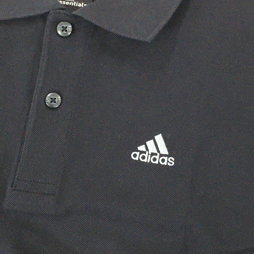 アディダス 半袖ポロシャツ 黒 ロゴグレー メンズ L ゴルフウェア adidas