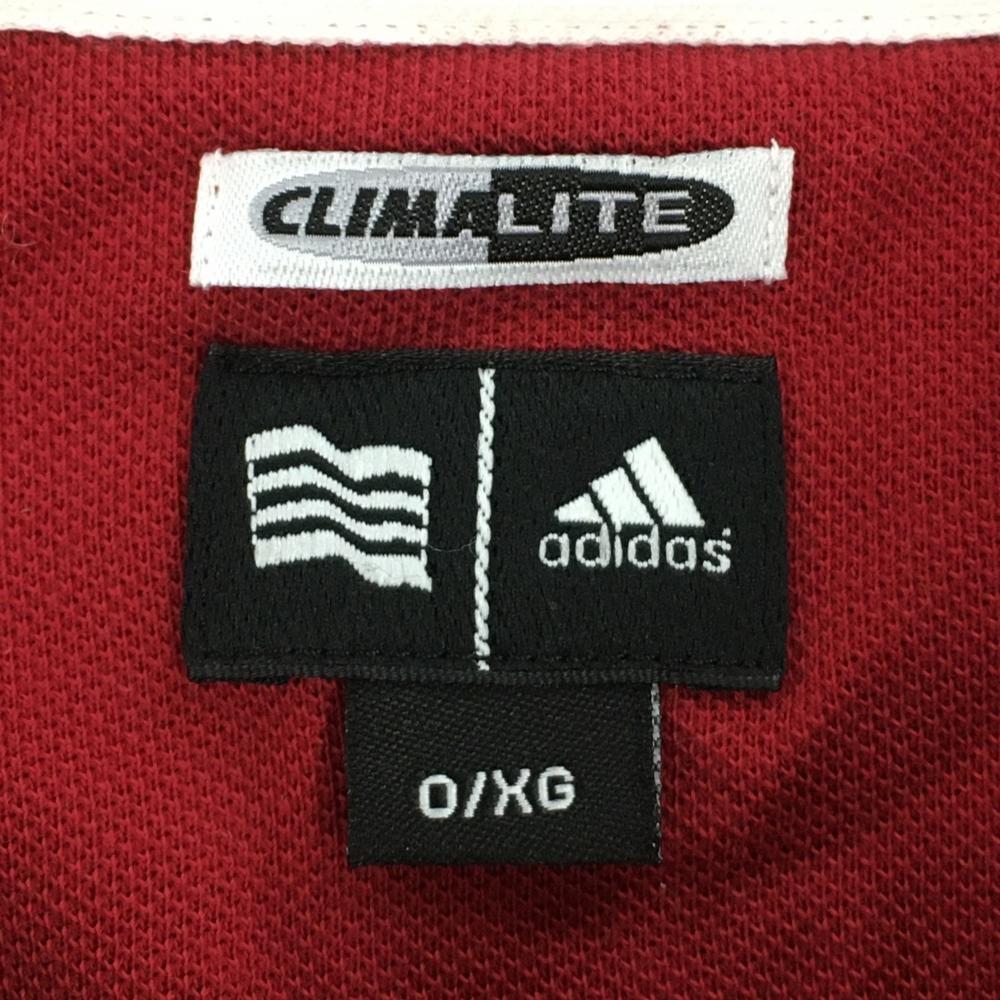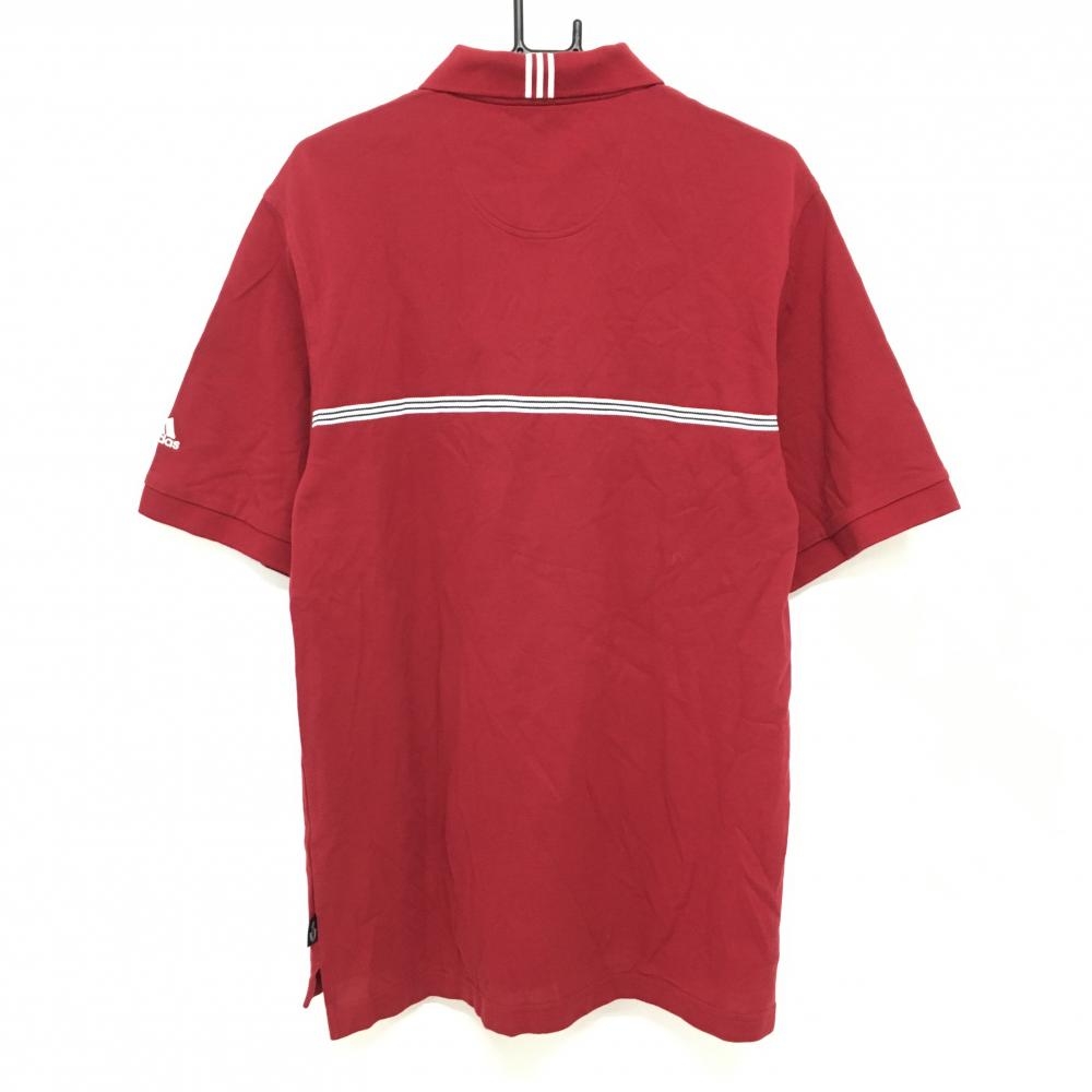 【美品】アディダス 半袖ポロシャツ レッド 袖ロゴ刺しゅう 胸元ライン メンズ O/XG ゴルフウェア adidas