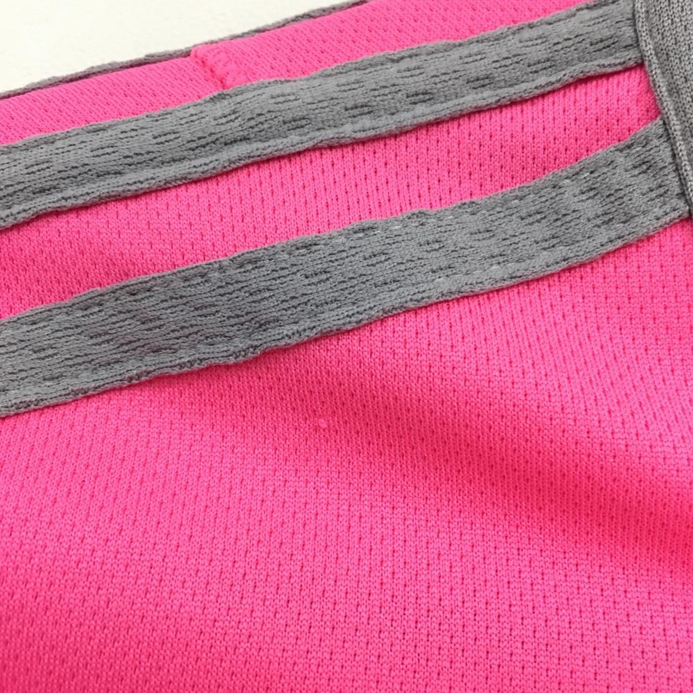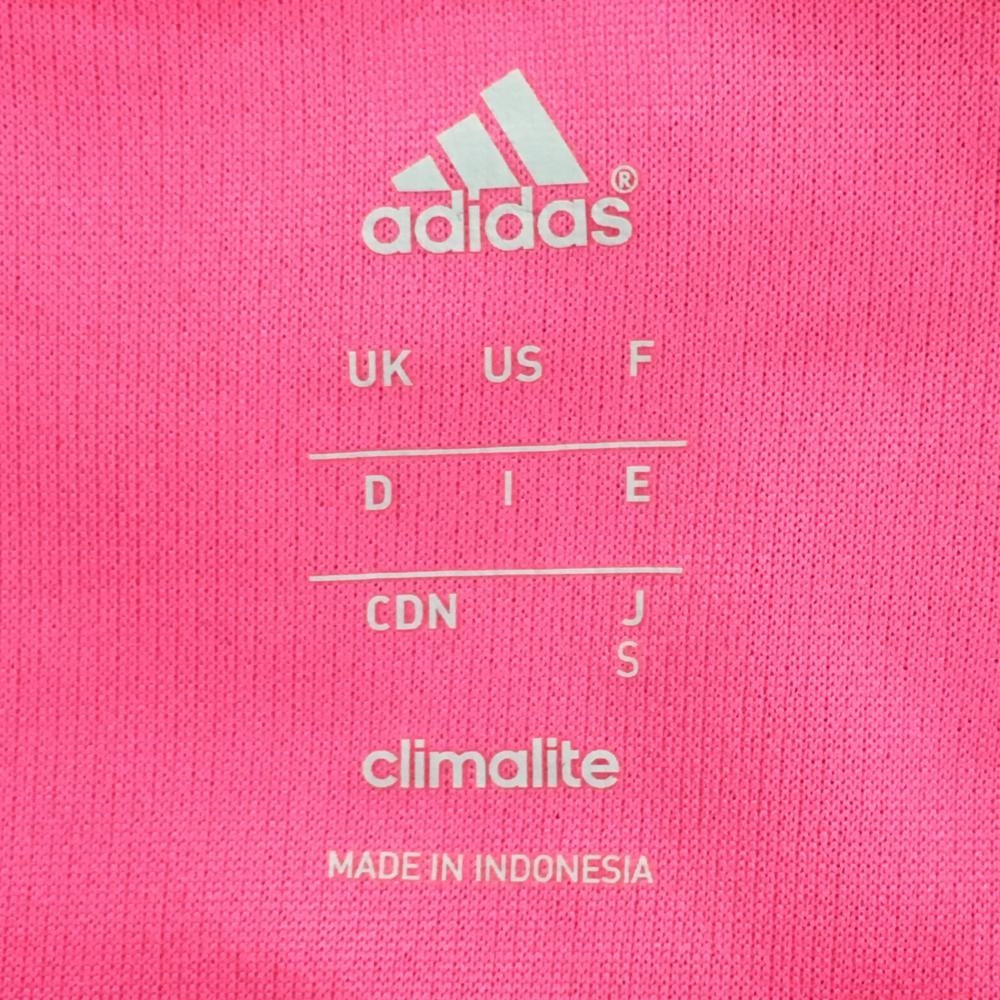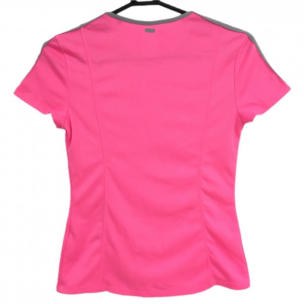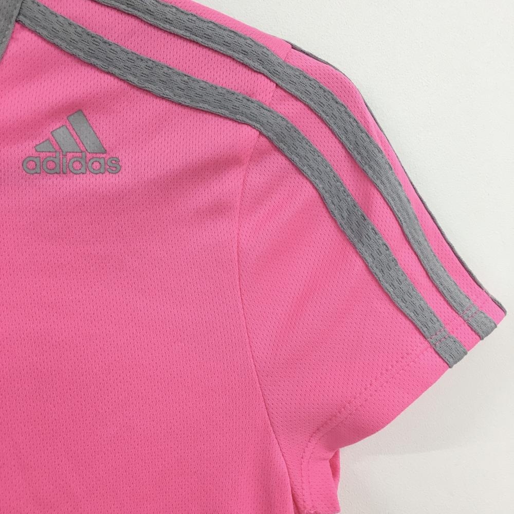 【美品】アディダス Tシャツ 蛍光ピンク×グレー 肩3ライン レディース S ゴルフウェア adidas