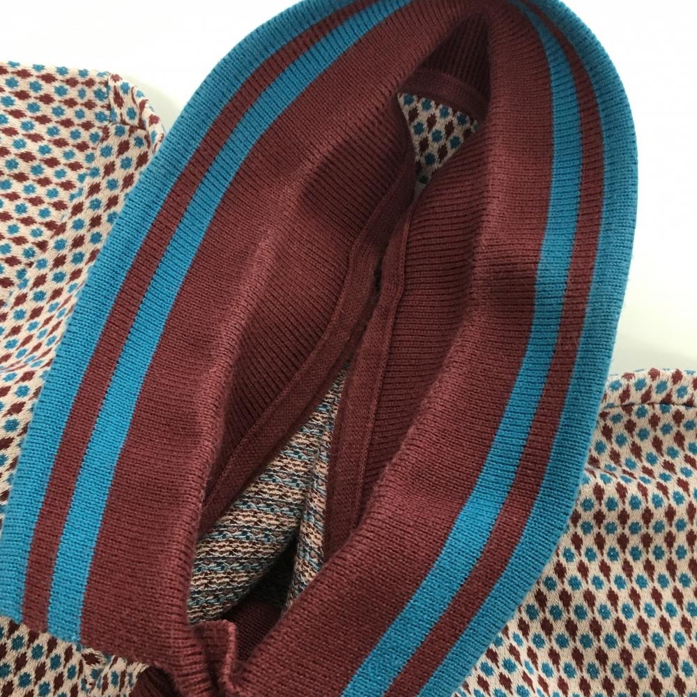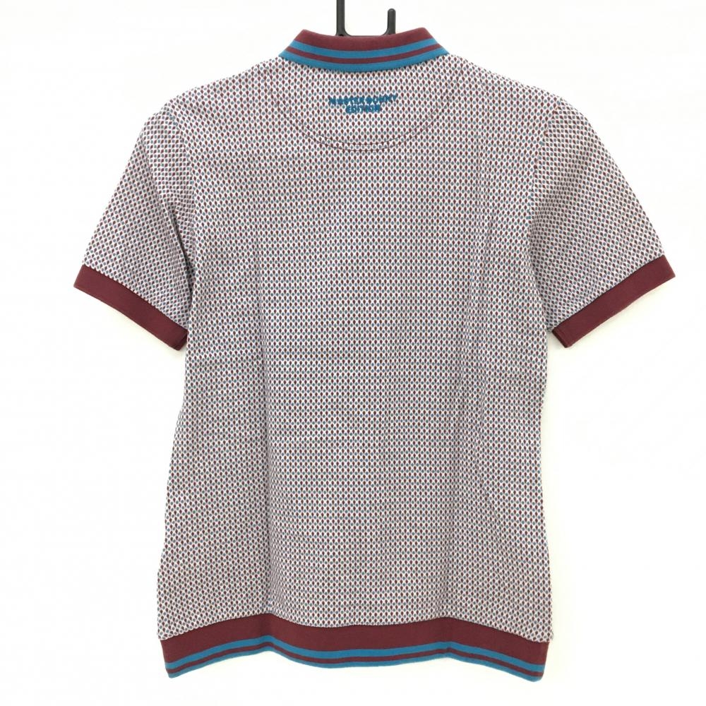 マスターバニー 半袖ポロシャツ ボルドー×ライトブルー 総柄 コットン100% レディース 0(S) ゴルフウェア MASTER BUNNY EDITION