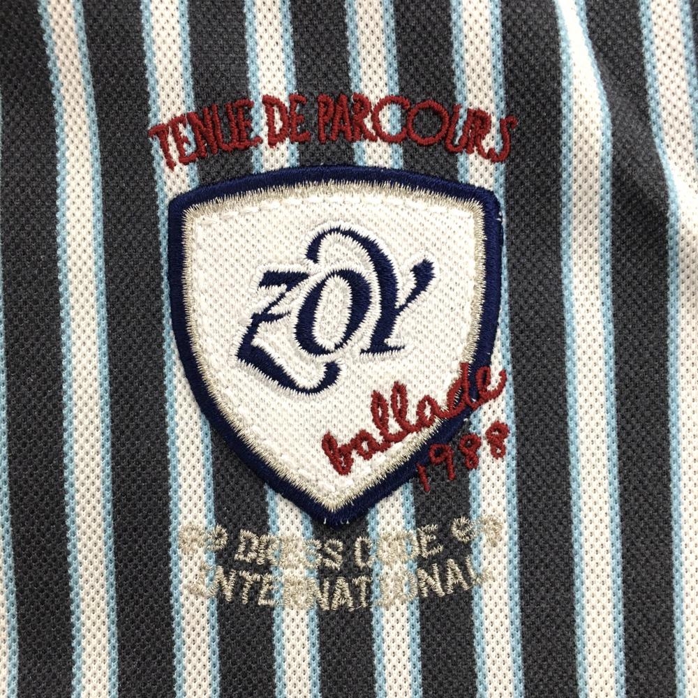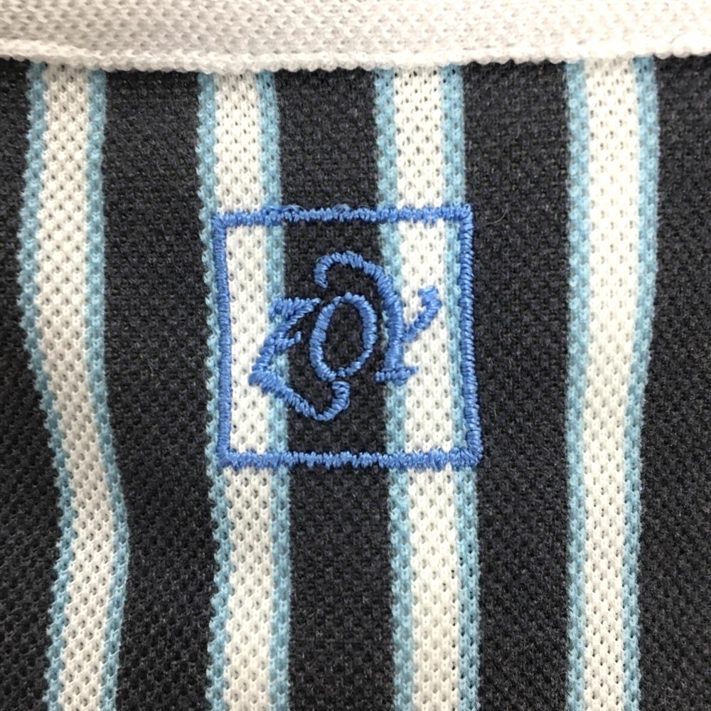 ゾーイ 半袖ポロシャツ ネイビー×白 ストライプ ロゴ刺しゅう レディース 38(M) ゴルフウェア ZOY