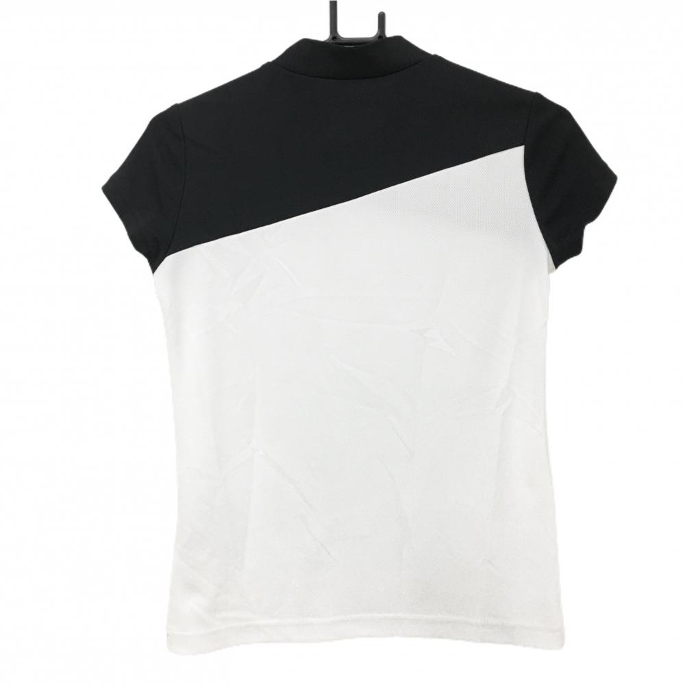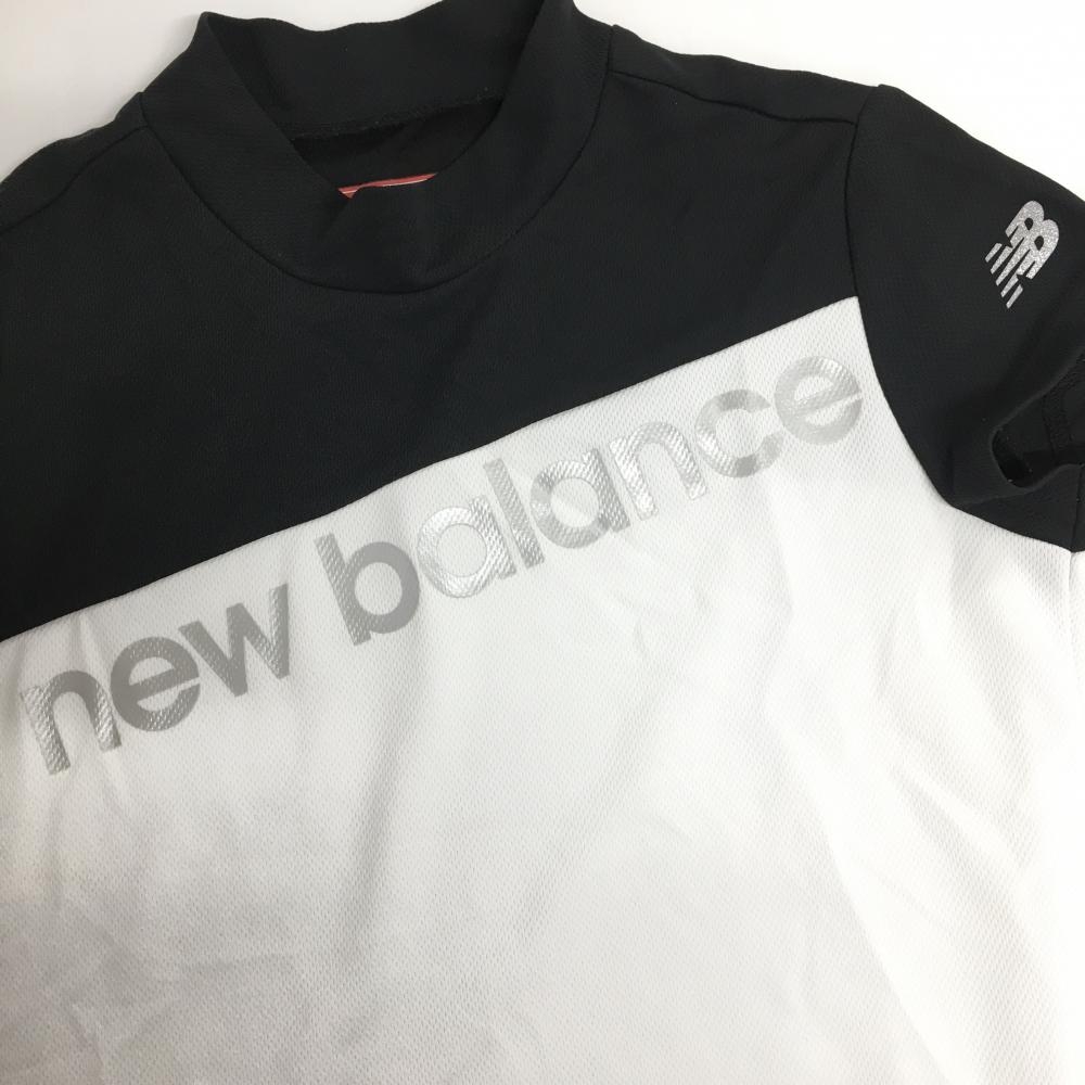【美品】ニューバランスゴルフ 半袖ハイネックシャツ 黒×白 ロゴシルバー レディース 0 ゴルフウェア 2022年モデル New Balance
