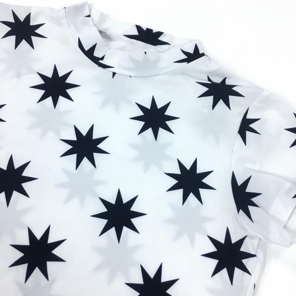 【超美品】ジャックバニー 半袖ハイネックシャツ 白×ネイビー 星柄 スター レディース 0(S) ゴルフウェア 2024年モデル Jack Bunny