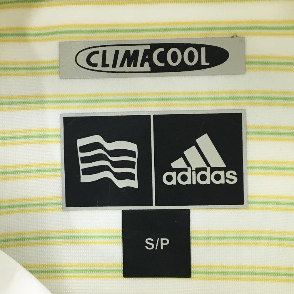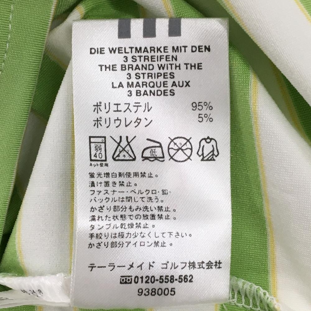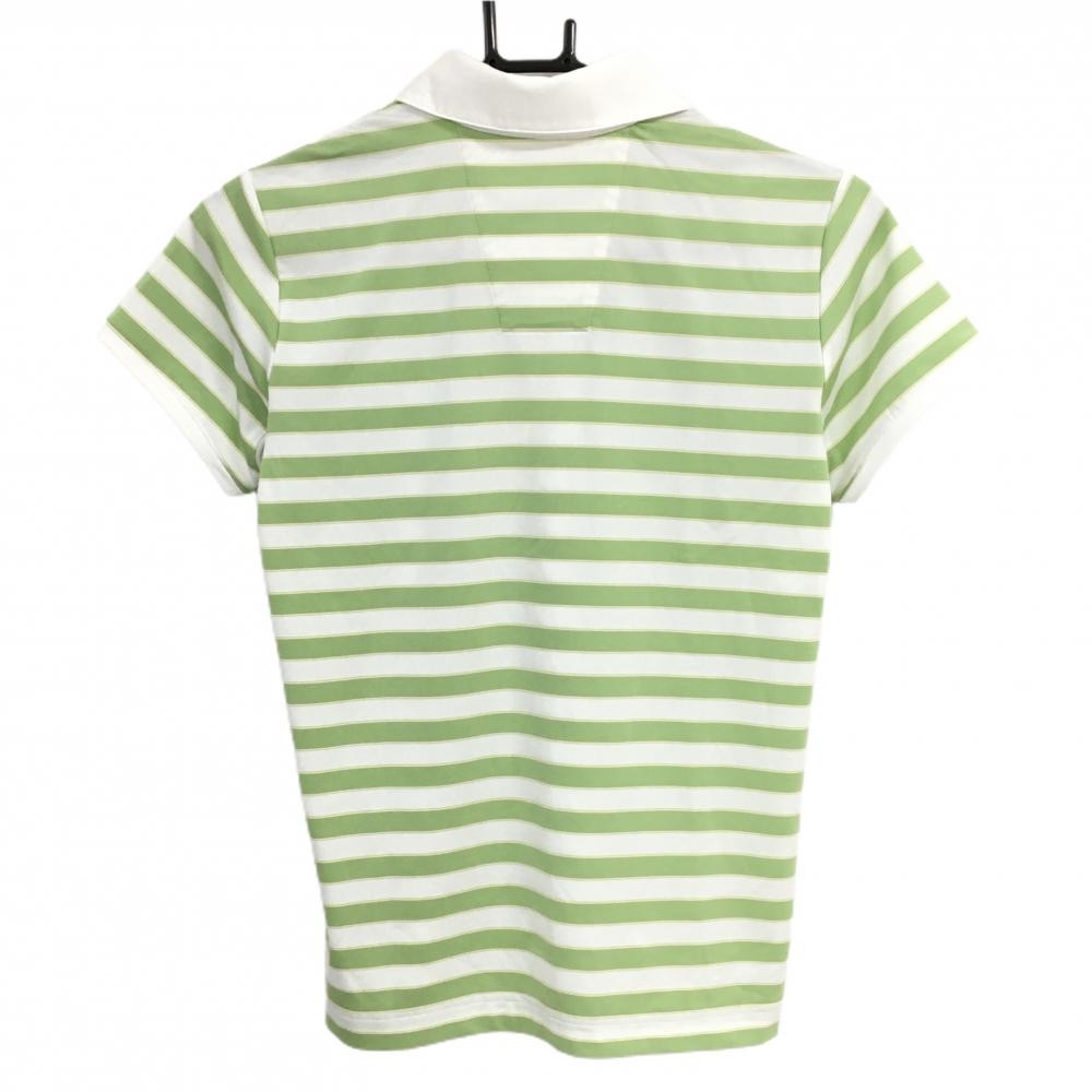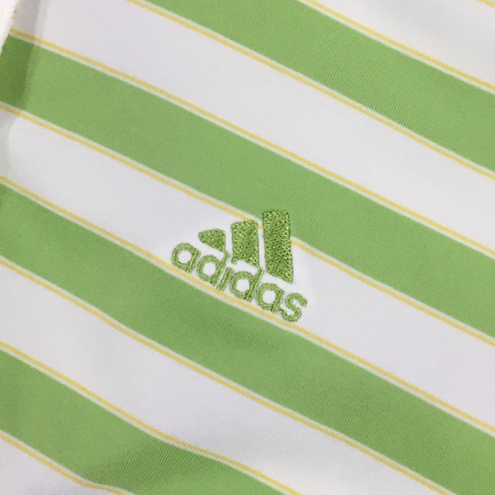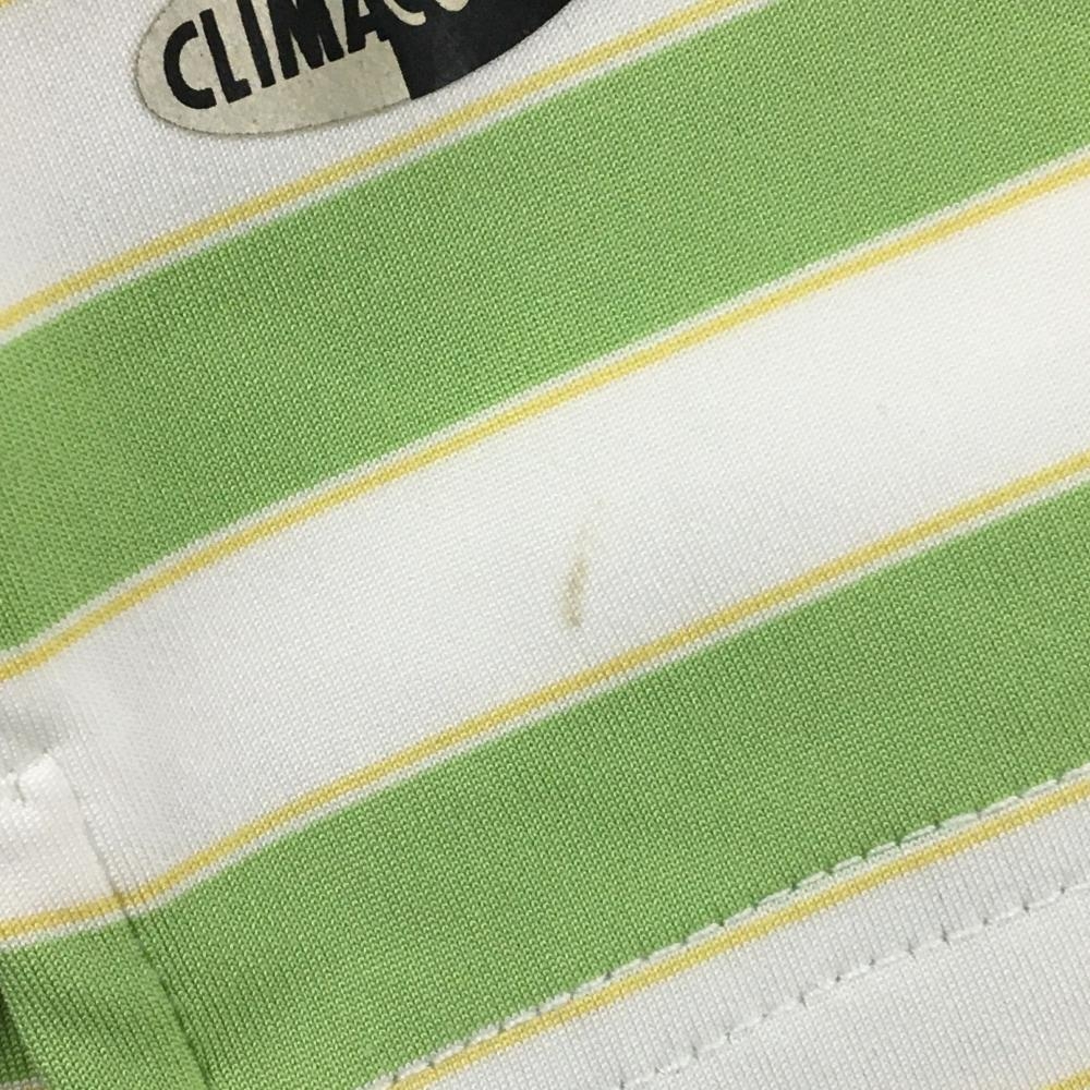 アディダス 半袖ポロシャツ 白×ライトグリーン ボーダー CLIMACOOL 袖下一部メッシュ レディース S/P ゴルフウェア adidas