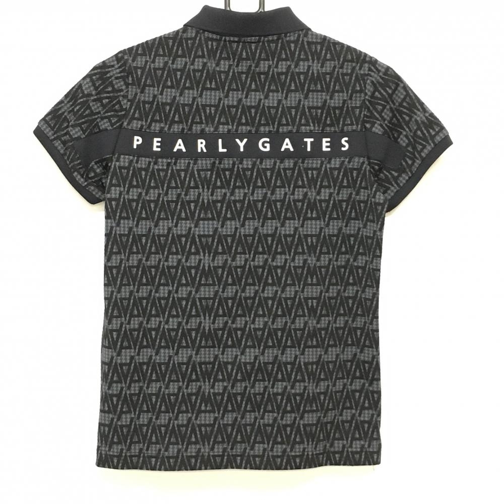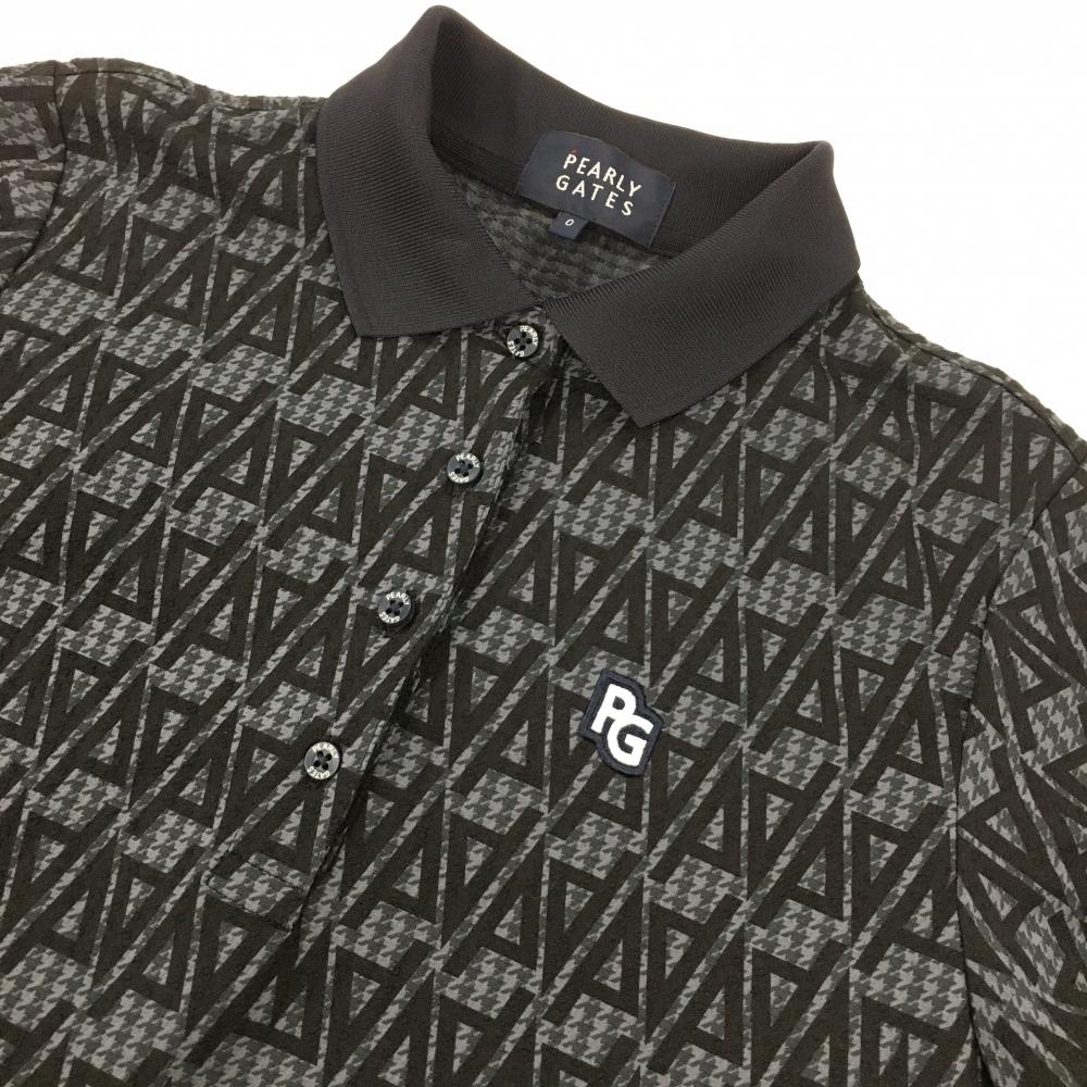 【超美品】パーリーゲイツ 半袖ポロシャツ グレー×黒 総柄 千鳥格子 レディース 0(S) ゴルフウェア 2024年モデル PEARLY GATES