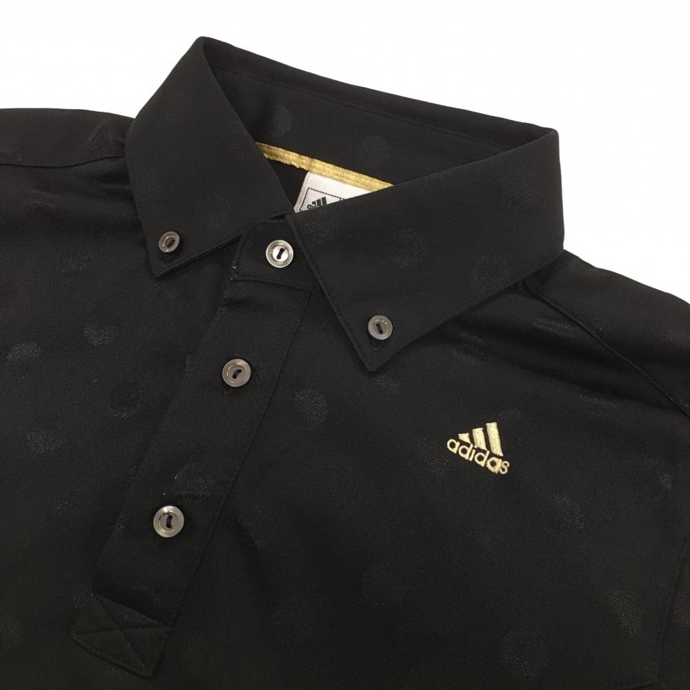【美品】アディダス 半袖ポロシャツ 黒 ドット織生地 ロゴ刺しゅう メンズ S/P ゴルフウェア adidas