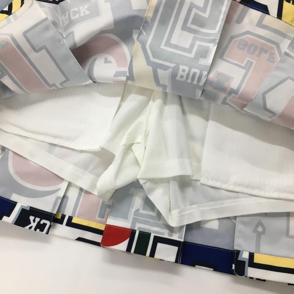 【超美品】ジャックバニー スカート 白×マルチカラー 英字柄 ボックスプリーツ レディース 1(M) ゴルフウェア Jack Bunny