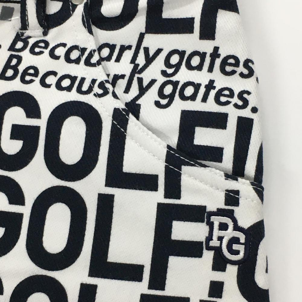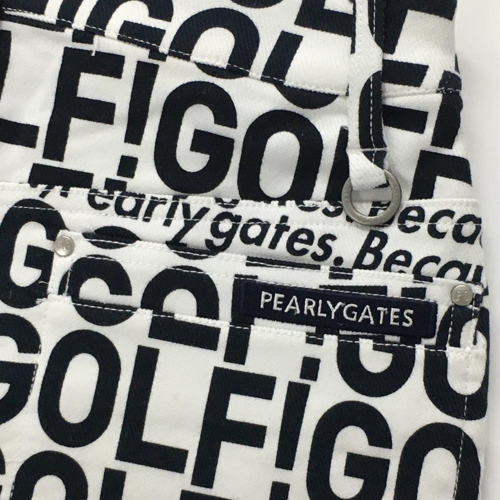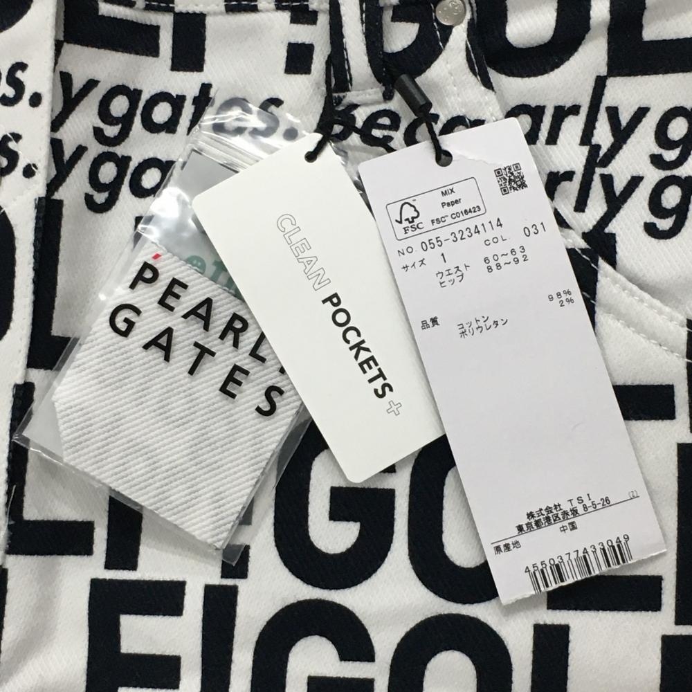 【新品】パーリーゲイツ スカート 白×黒 英字総柄 クリーンポケット レディース 1(M) ゴルフウェア 2023年モデル PEARLY GATES
