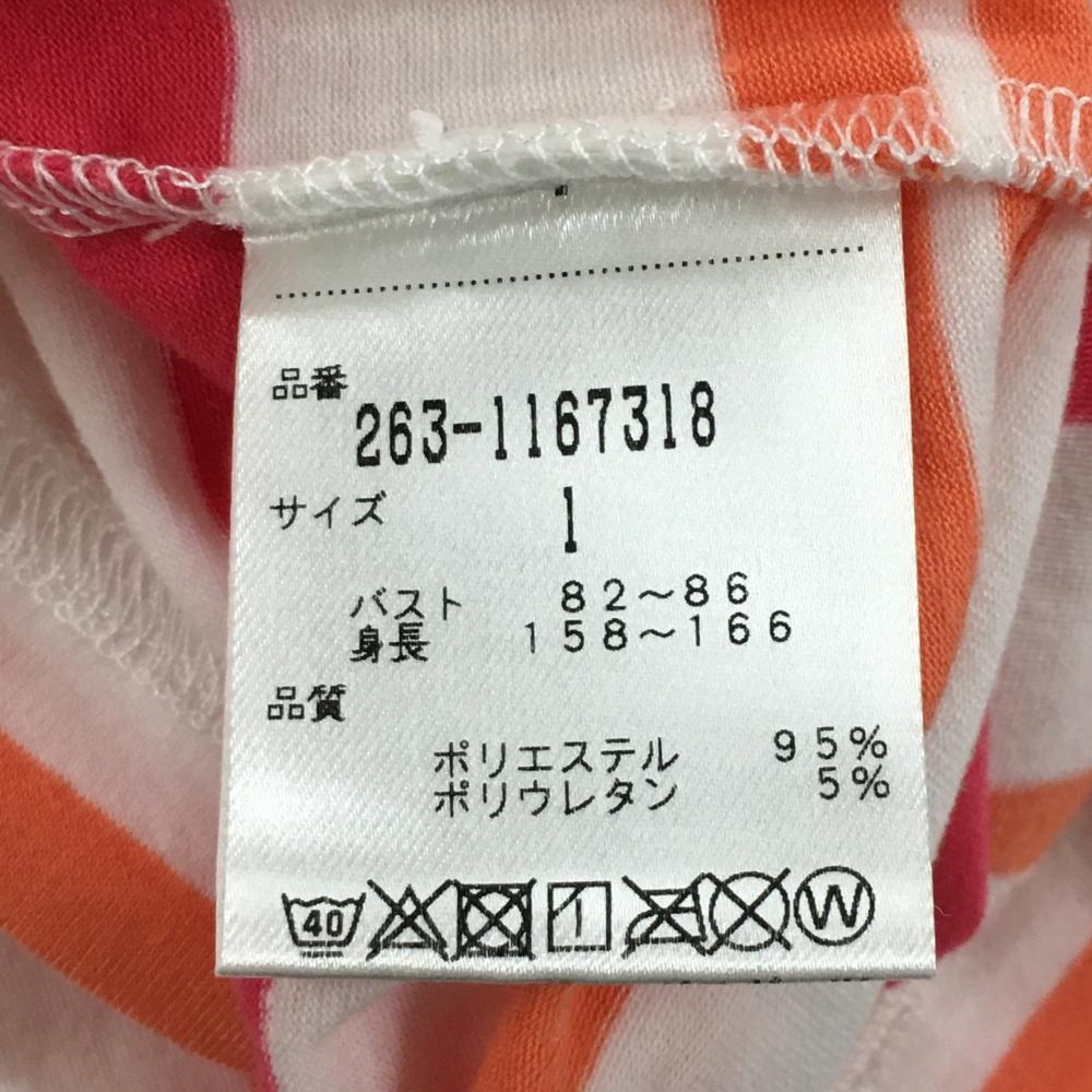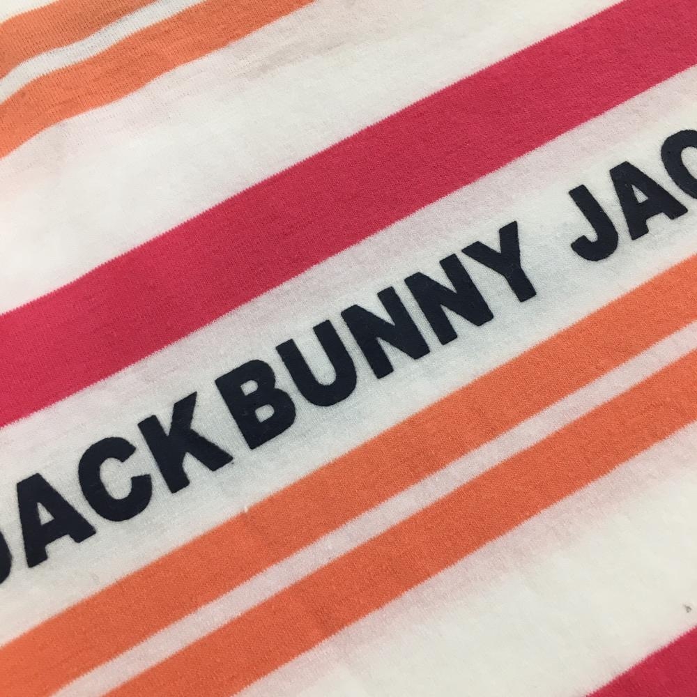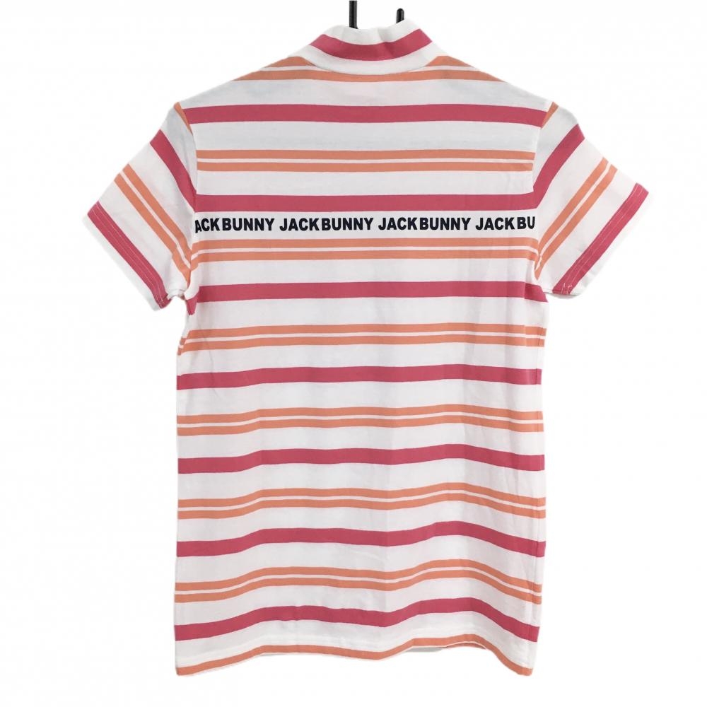 【超美品】ジャックバニー 半袖ハイネックシャツ 白×ピンク ボーダー 胸元ロゴ レディース 1(M) ゴルフウェア 2021年モデル Jack Bunny