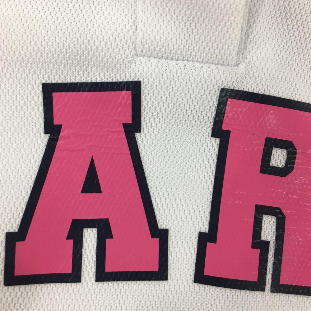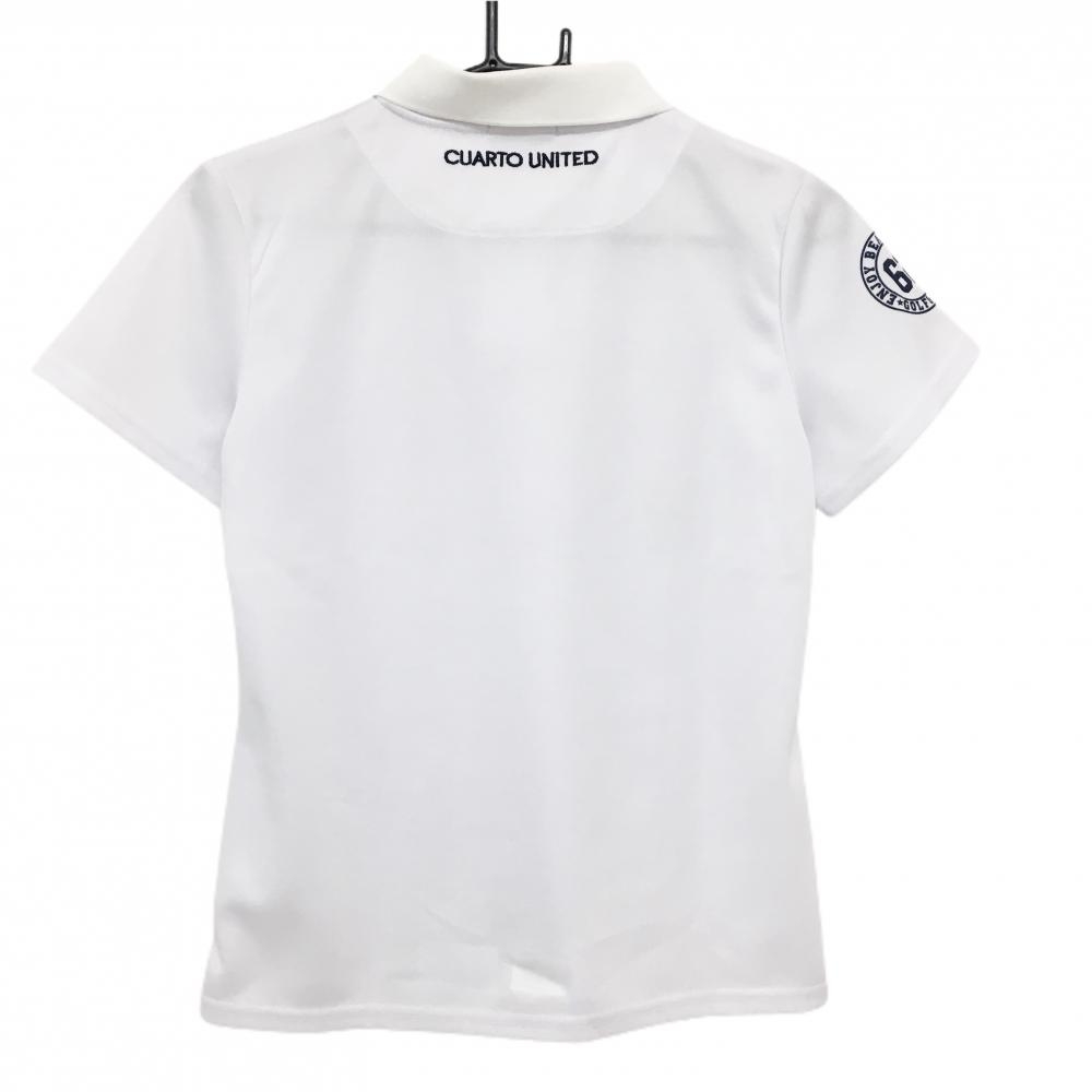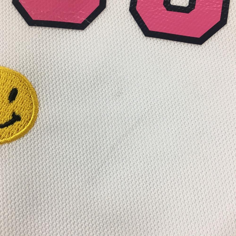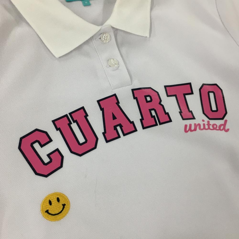 クアルトユナイテッド 半袖ポロシャツ 白×ピンク ニコちゃん刺しゅう レディース M ゴルフウェア CUARTO UNITED