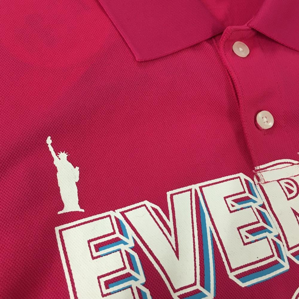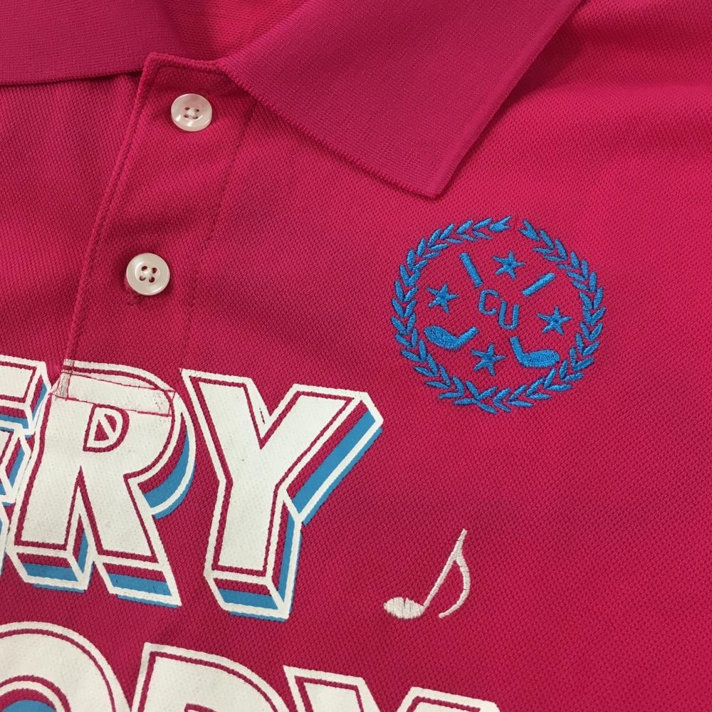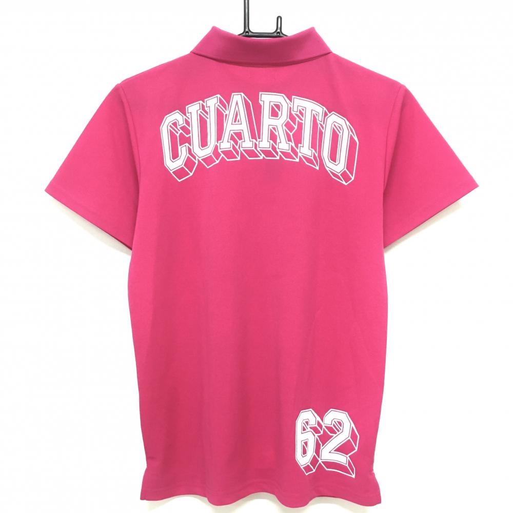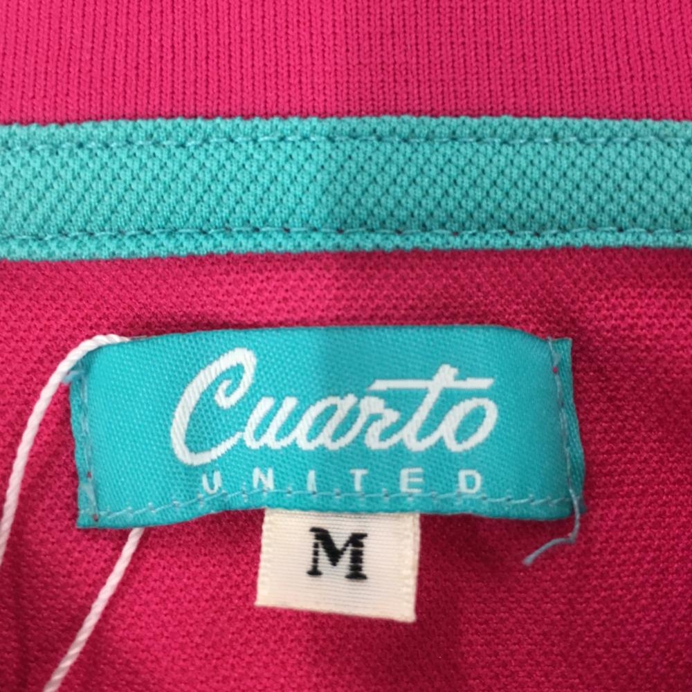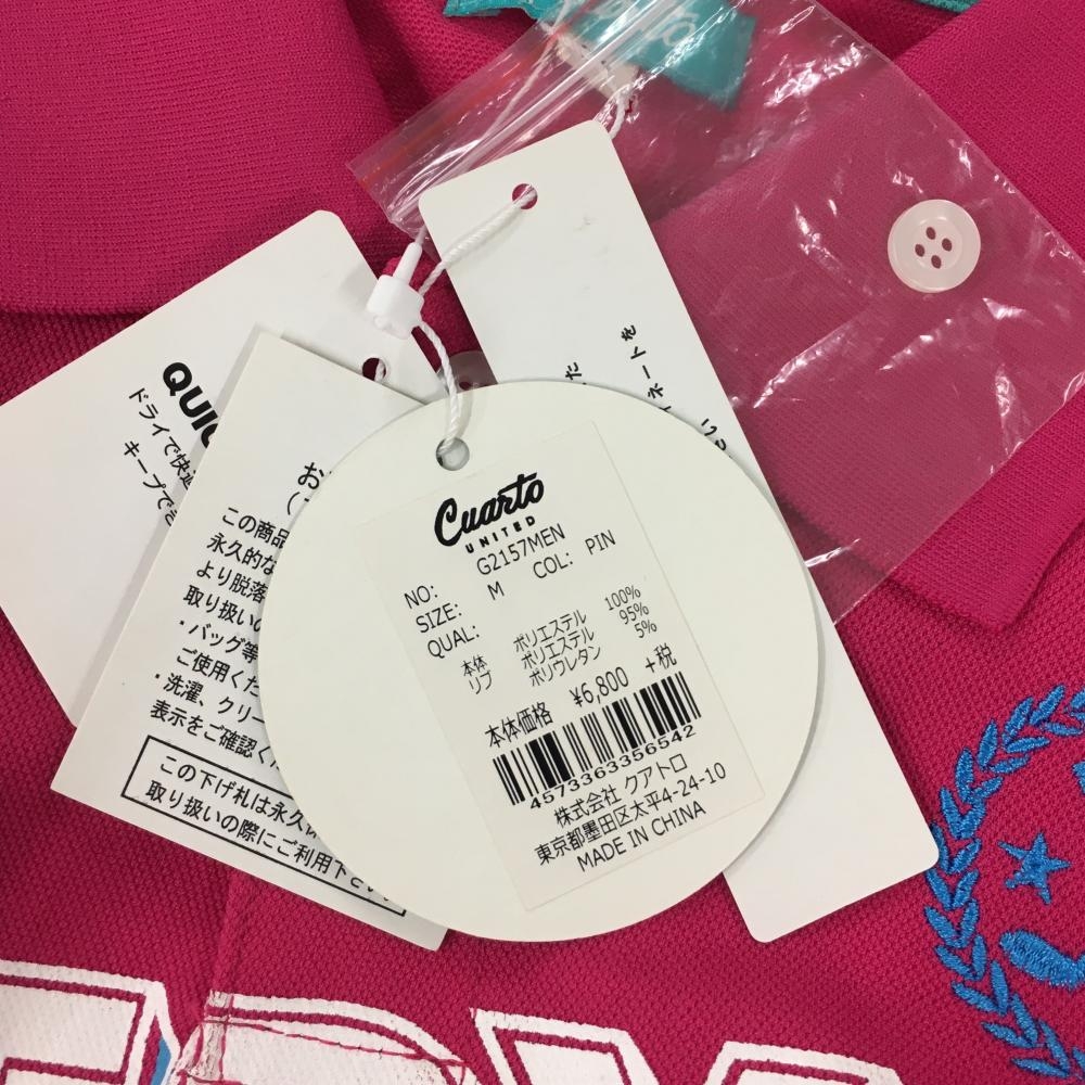 【新品】クアルトユナイテッド 半袖ポロシャツ ピンク×白 英文字プリント 吸汗速乾 レディース M ゴルフウェア CUARTO UNITED