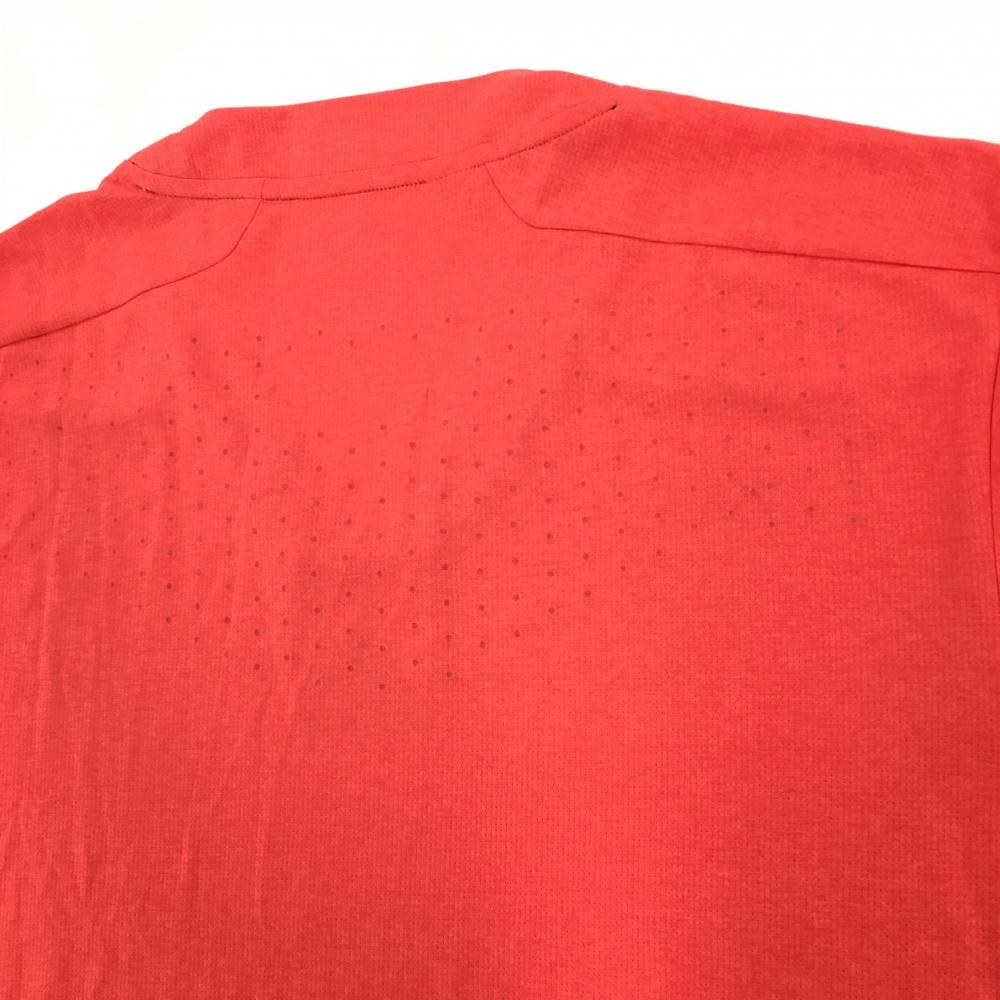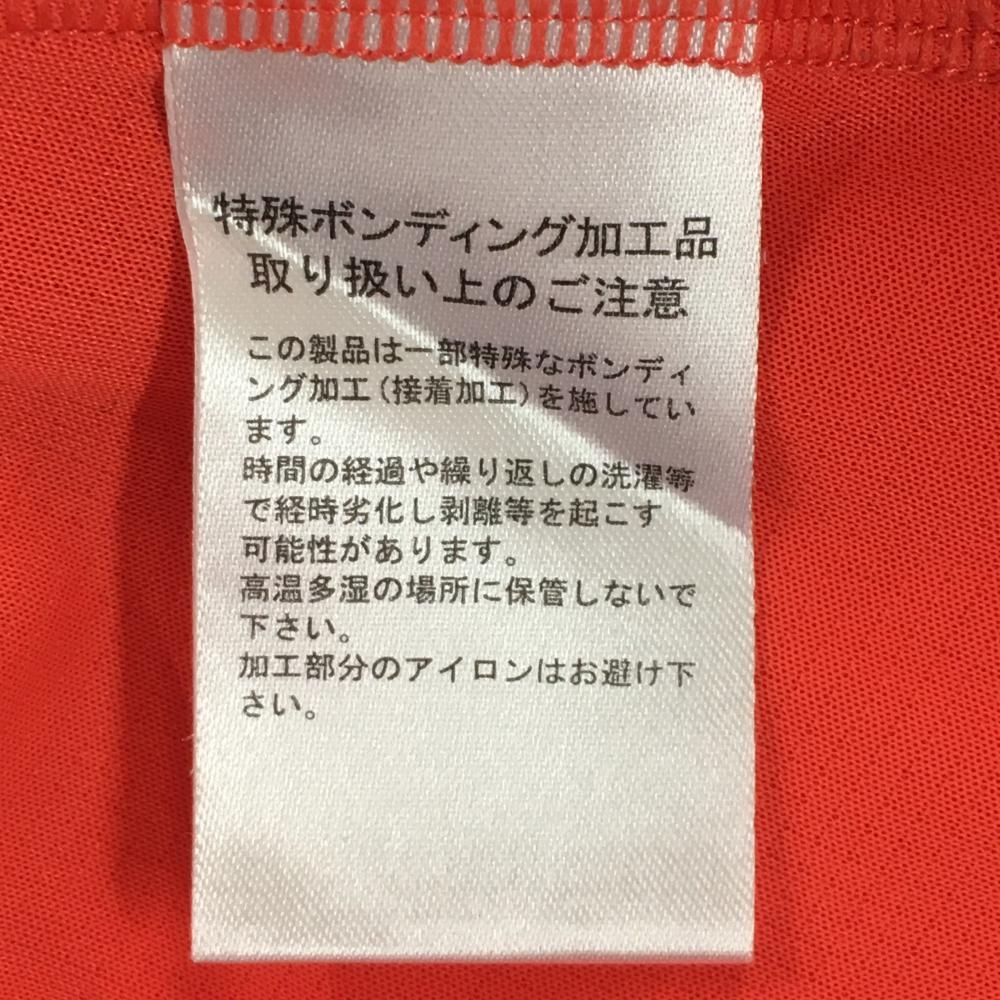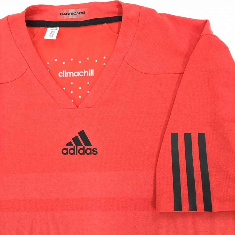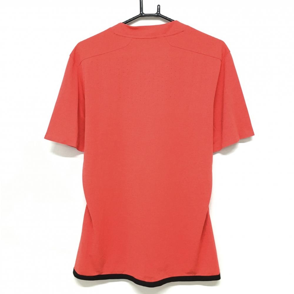 【超美品】アディダス Tシャツ オレンジ 織生地 ロゴプリント 袖3ライン メンズ ゴルフウェア adidas