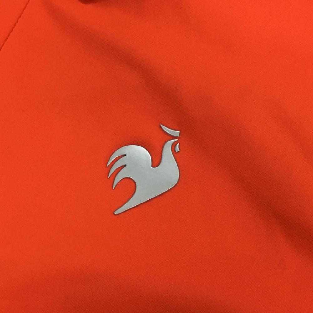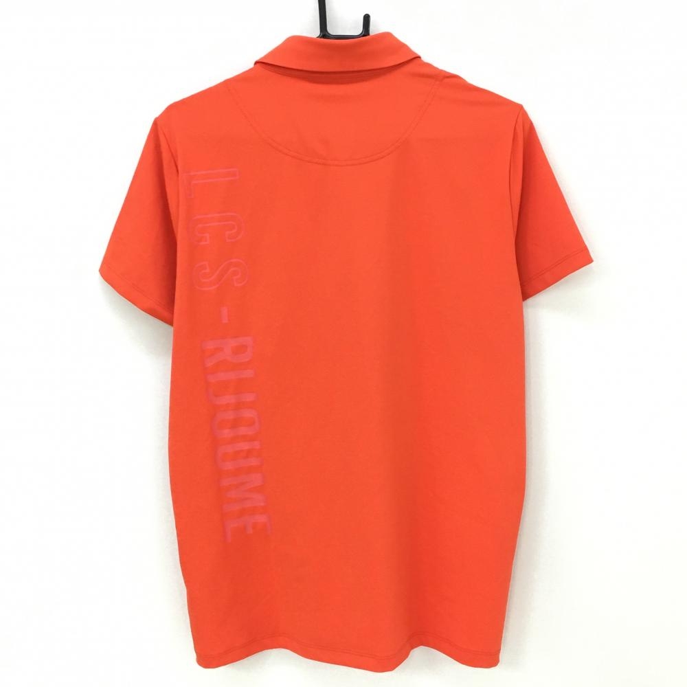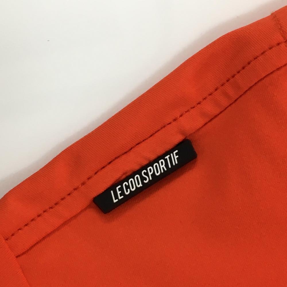 【超美品】ルコックゴルフ 半袖ポロシャツ オレンジ 背面ロゴプリント ストレッチ メンズ L ゴルフウェア le coq sportif