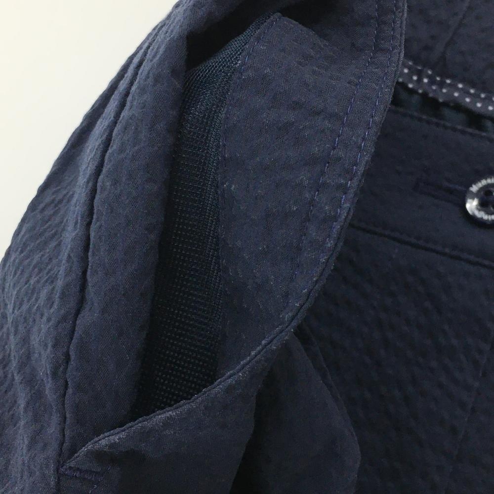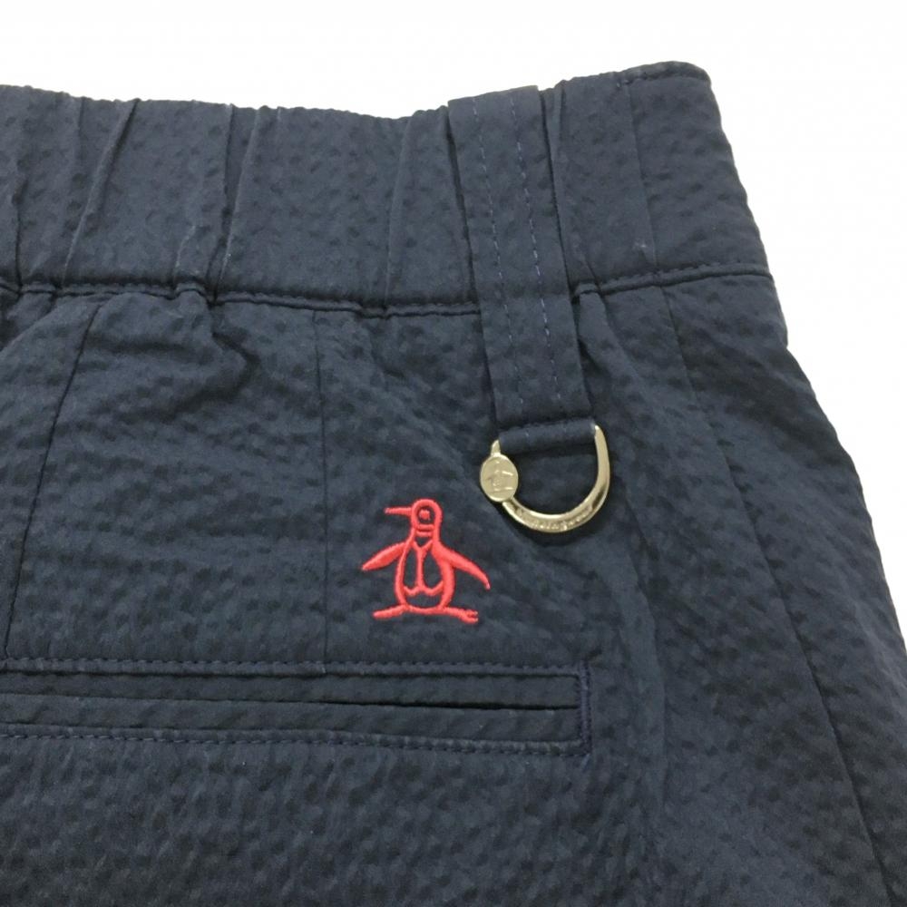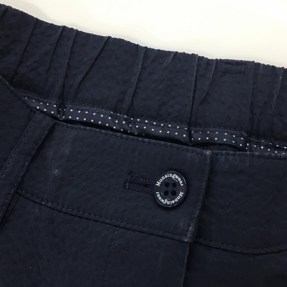 マンシングウェア 半端丈パンツ ネイビー サッカー生地 ストライプ柄 ロゴ刺しゅう レディース S ゴルフウェア Munsingwear