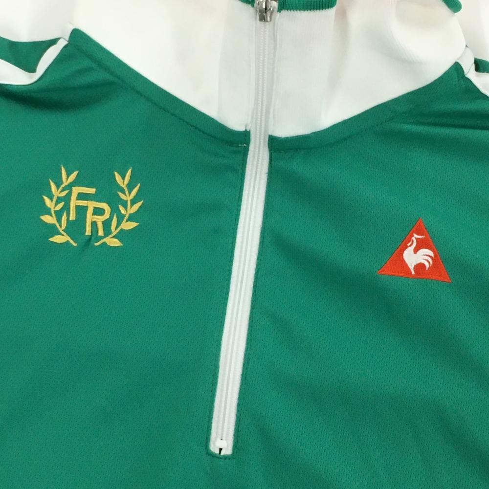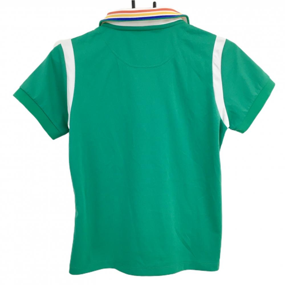 【超美品】ルコック 半袖ポロシャツ グリーン×白 ハーフジップ レディース L ゴルフウェア le coq sportif