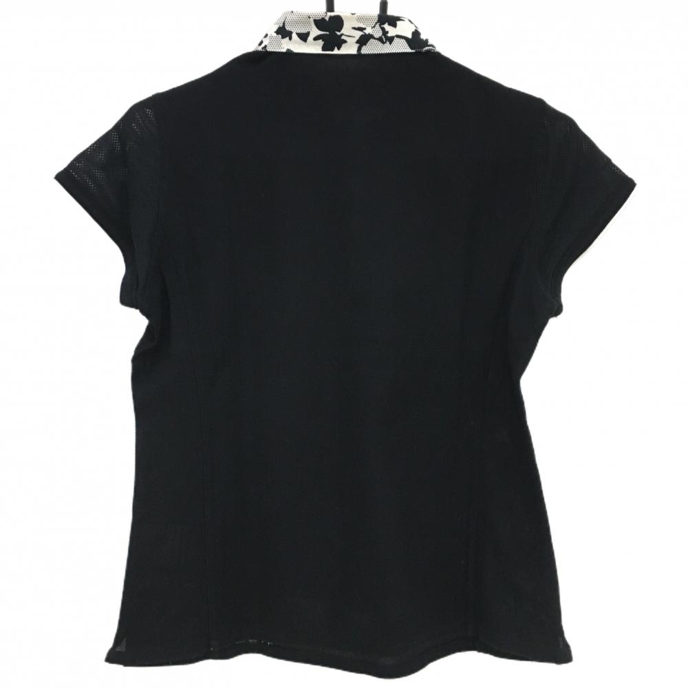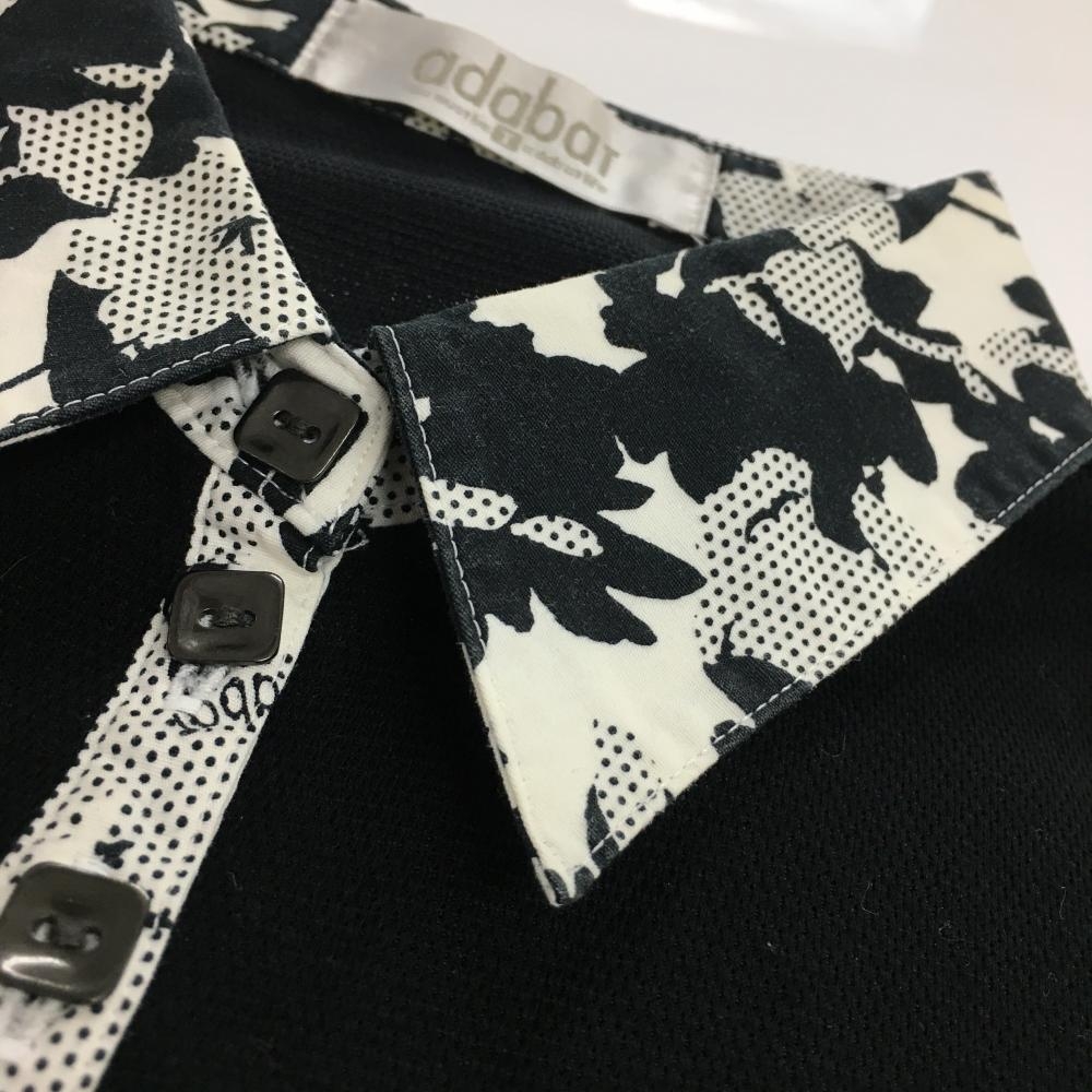 アダバット 半袖ポロシャツ 黒×白 袖メッシュ レディース I(M) ゴルフウェア adabat