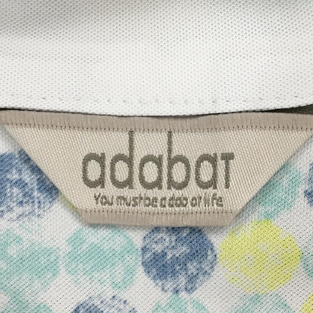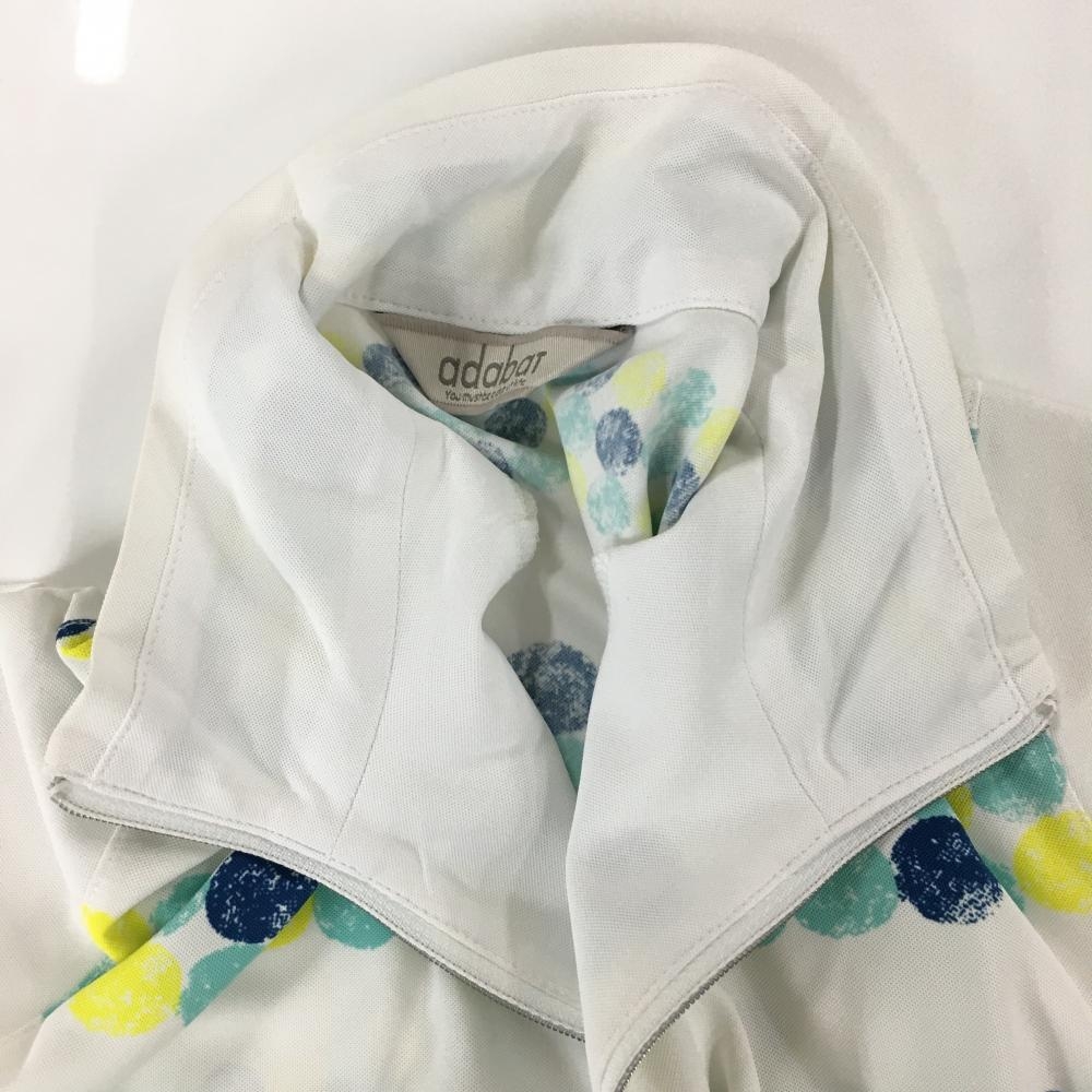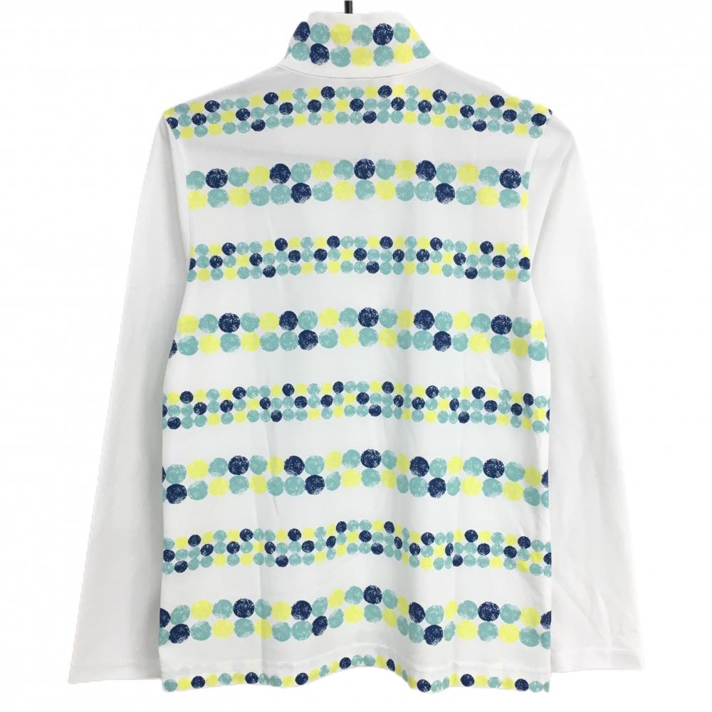 アダバット 長袖ハイネックシャツ 白×ブルー×イエロー 身頃ドット ボーダー ハーフジップ レディース 38(M) ゴルフウェア adabat