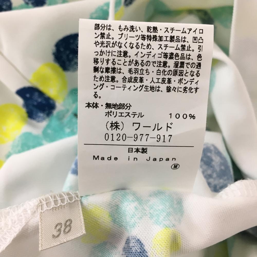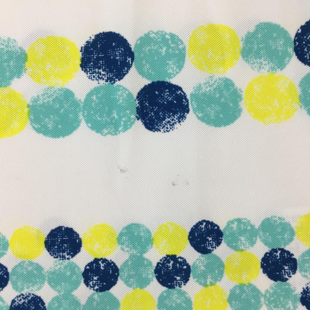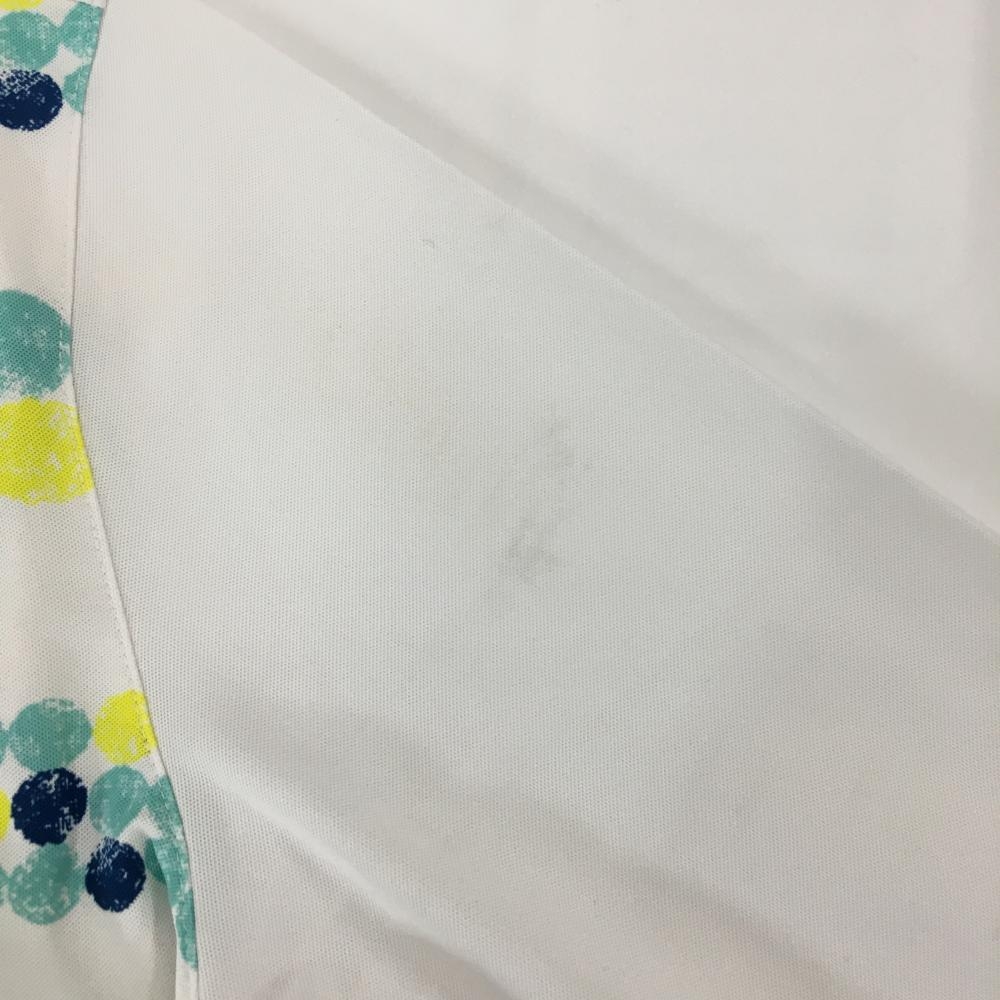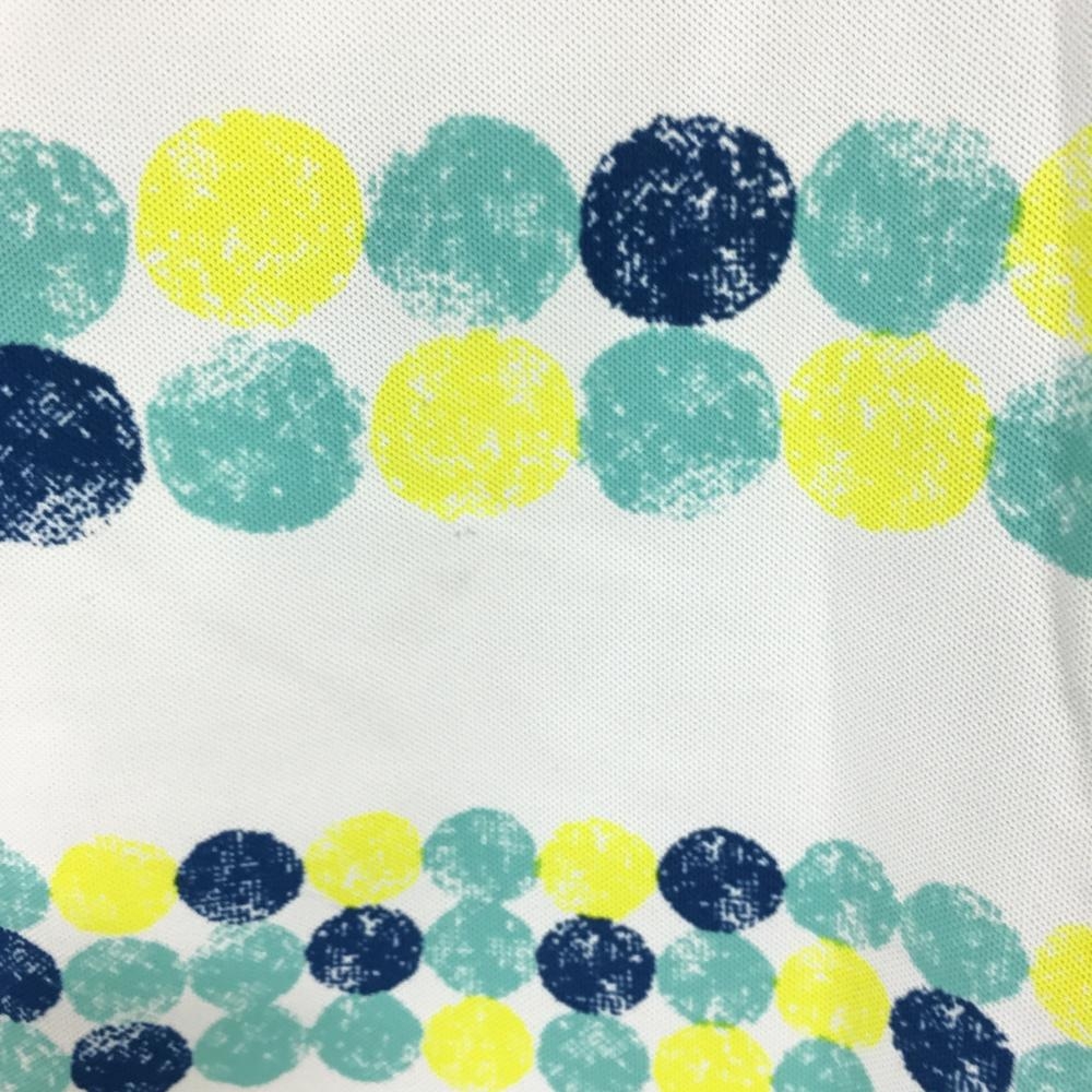 アダバット 長袖ハイネックシャツ 白×ブルー×イエロー 身頃ドット ボーダー ハーフジップ レディース 38(M) ゴルフウェア adabat