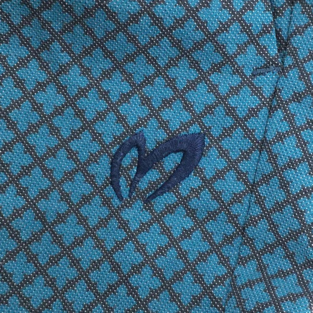 【超美品】マスターバニー パンツ ライトブルー×グレー 総柄 ストレッチ レディース 2(L) ゴルフウェア MASTER BUNNY EDITION