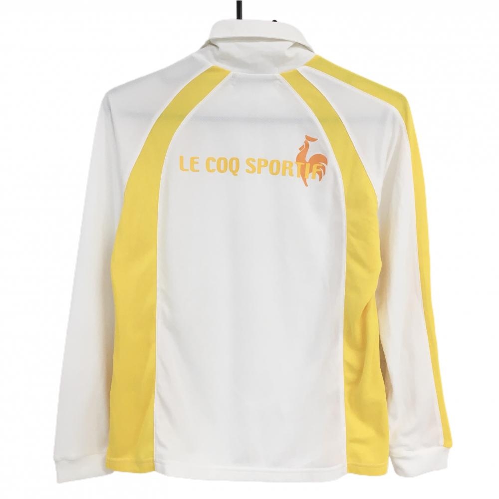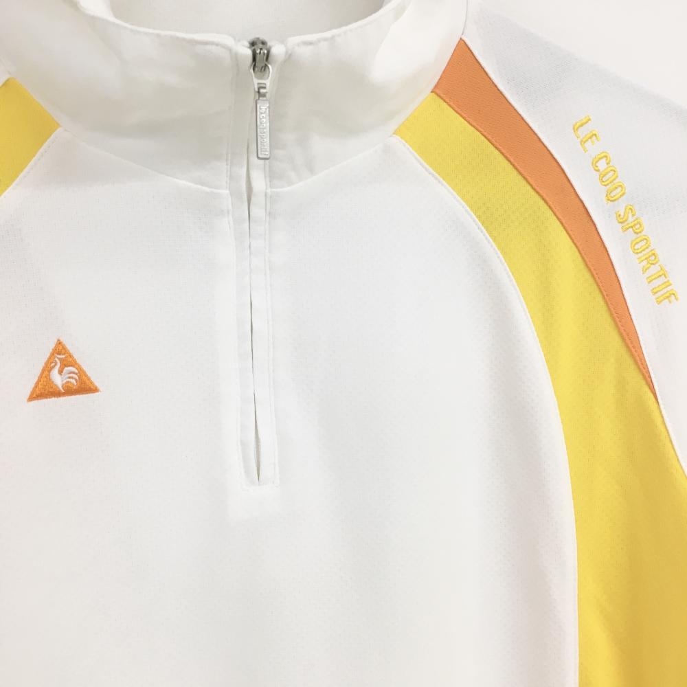 ルコック 長袖ハイネックシャツ 白×イエロー ハーフジップ バックロゴ レディース M ゴルフウェア le coq sportif