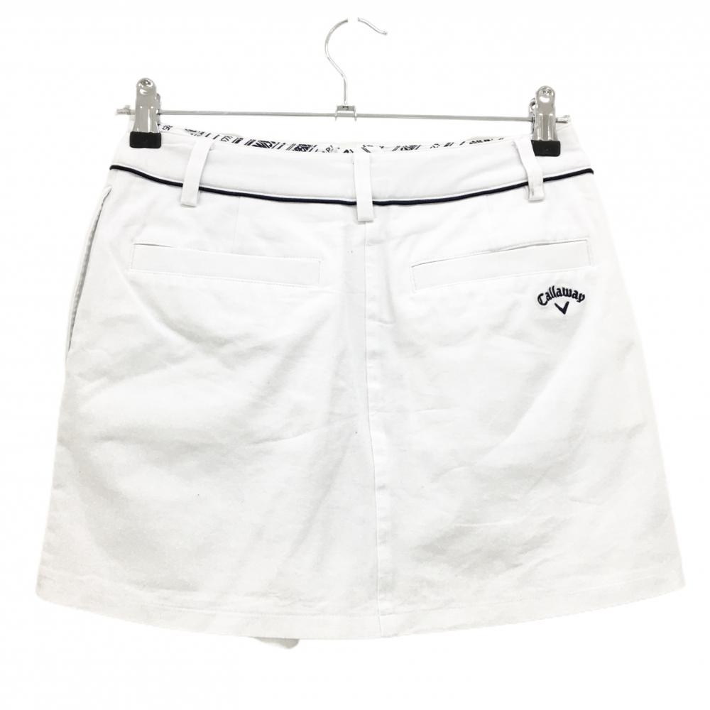 【美品】キャロウェイ スカート 白×ネイビー ストレッチ ベルト部パイピング 内側インナーパンツ レディース SS ゴルフウェア Callaway