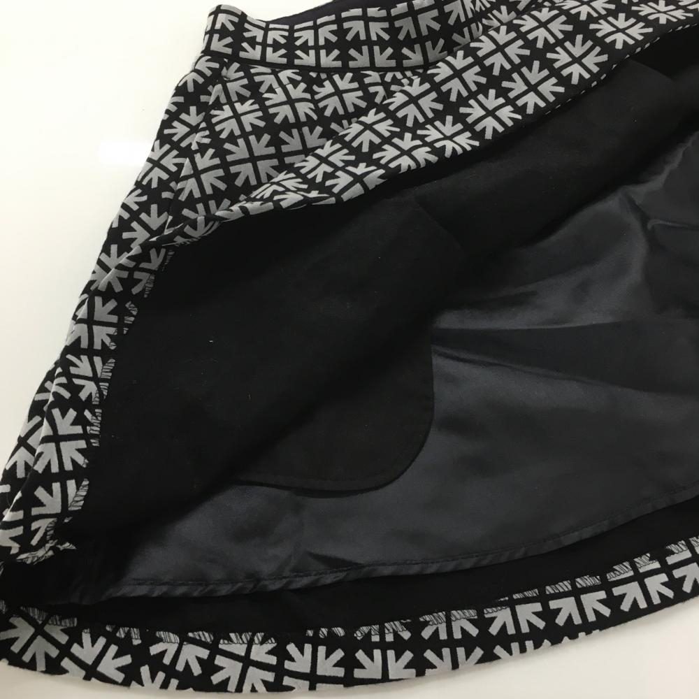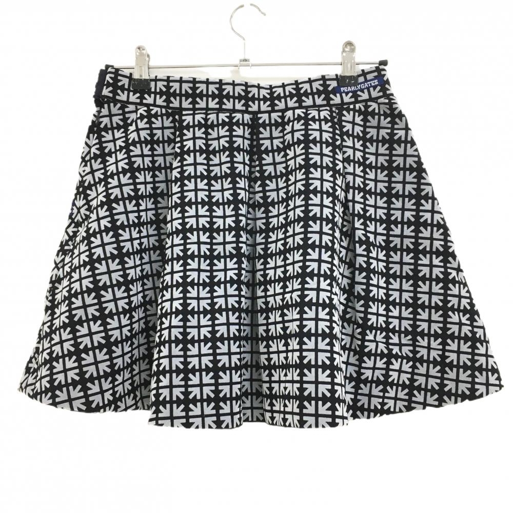 【超美品】パーリーゲイツ スカート 黒×グレー 総柄 微起毛 ウール混 裏地付き レディース 0(S) ゴルフウェア PEARLY GATES