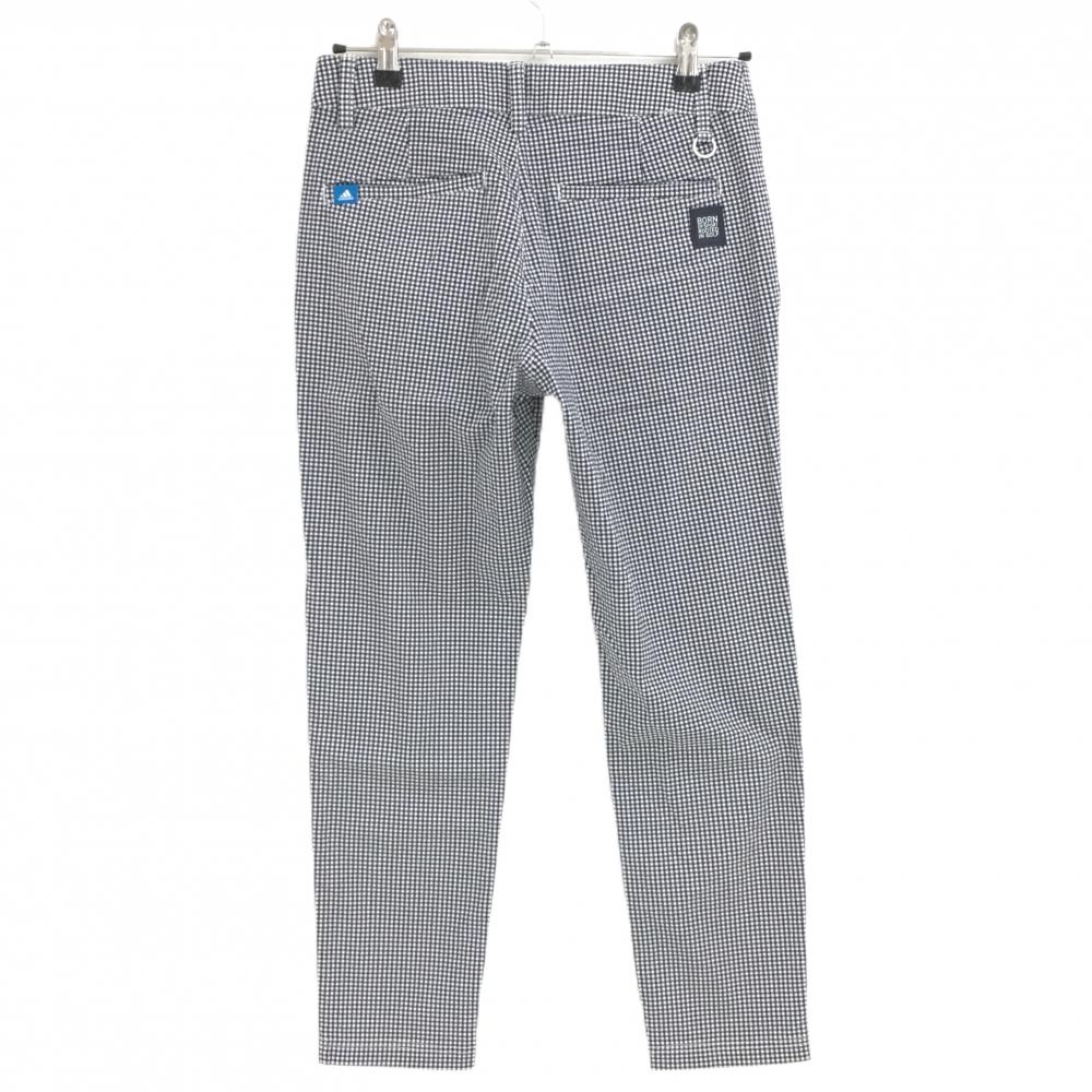 【超美品】アディダス パンツ ネイビー×白 チェック柄 バックロゴ シリコンワッペン レディース S/P ゴルフウェア adidas