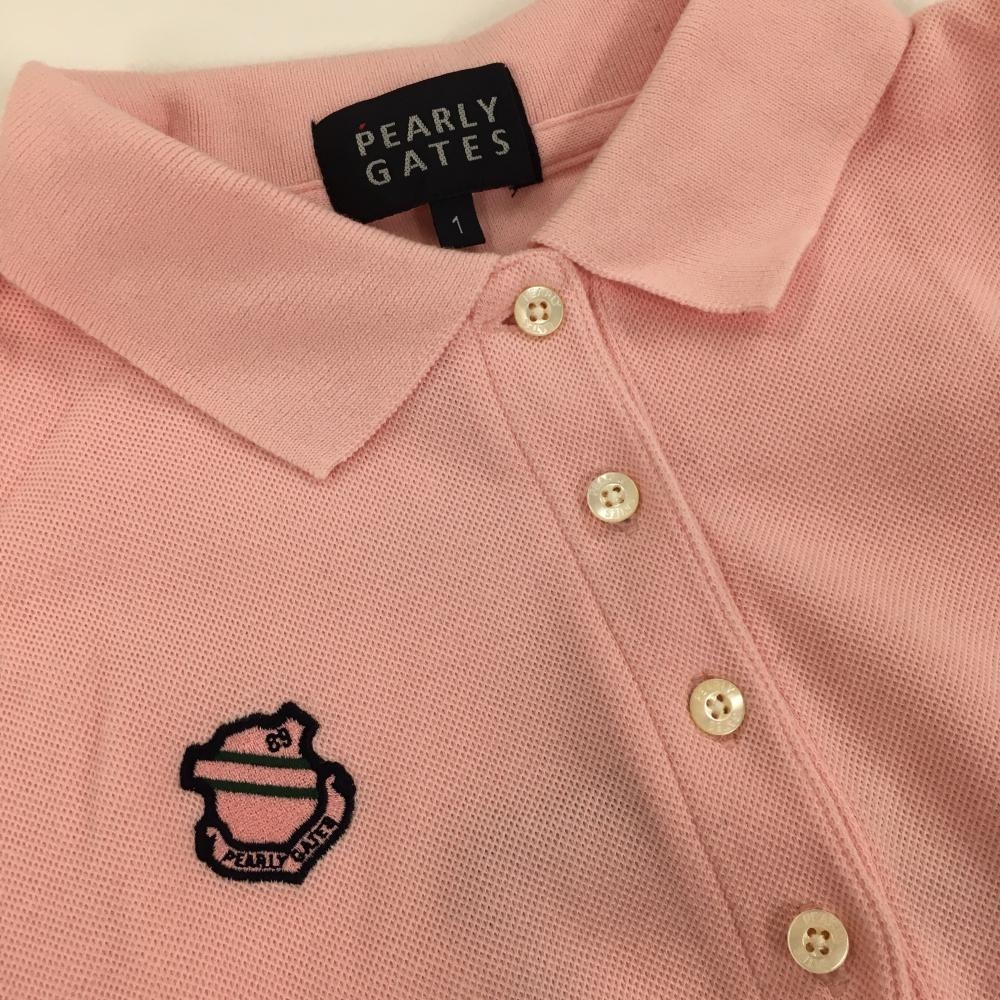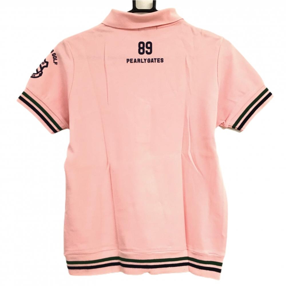 パーリーゲイツ 半袖ポロシャツ ピンク×ネイビー 袖口・裾ライン レディース 1(M) ゴルフウェア PEARLY GATES