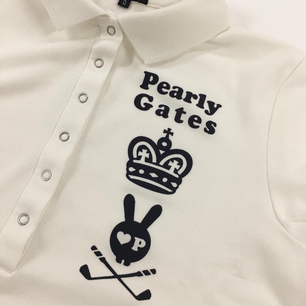 パーリーゲイツ 半袖ポロシャツ 白×ネイビー スカルラビット スナップボタン レディース 0(S) ゴルフウェア PEARLY GATES