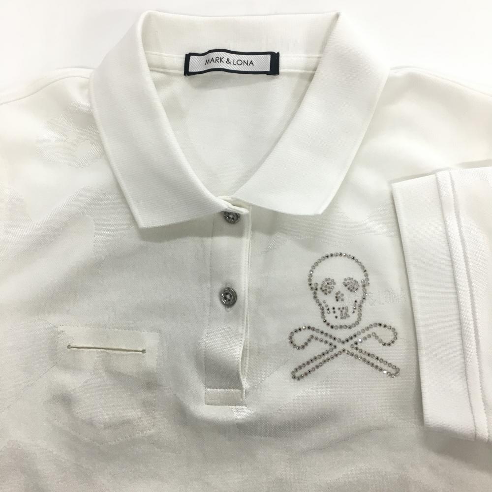 マークアンドロナ 半袖ポロシャツ 白 迷彩織生地 カモフラ スカル レディース 38(S) ゴルフウェア MARK&LONA