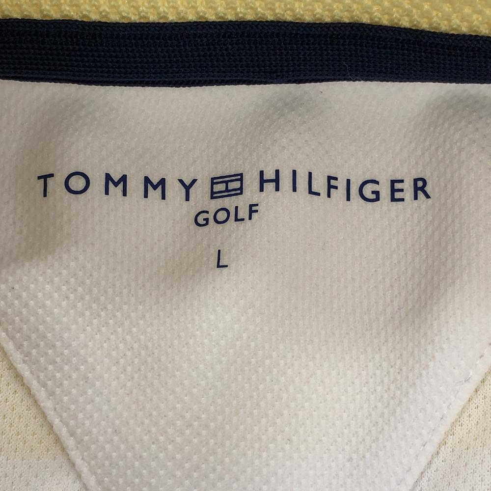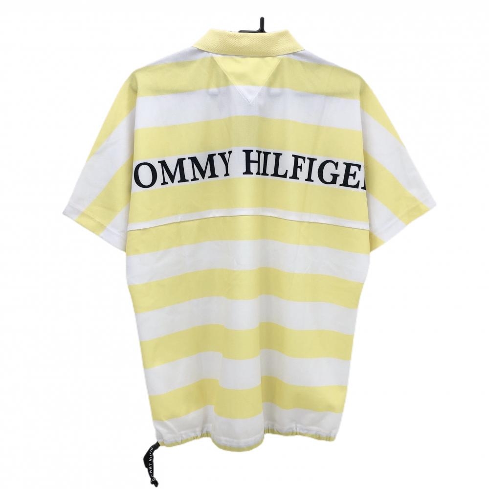 【超美品】トミーヒルフィガー 半袖ポロシャツ イエロー×白 ボーダー メンズ L ゴルフウェア サンプル品 Tommy Hilfiger Golf