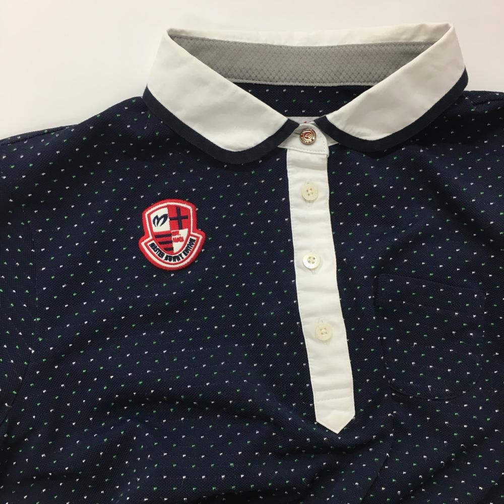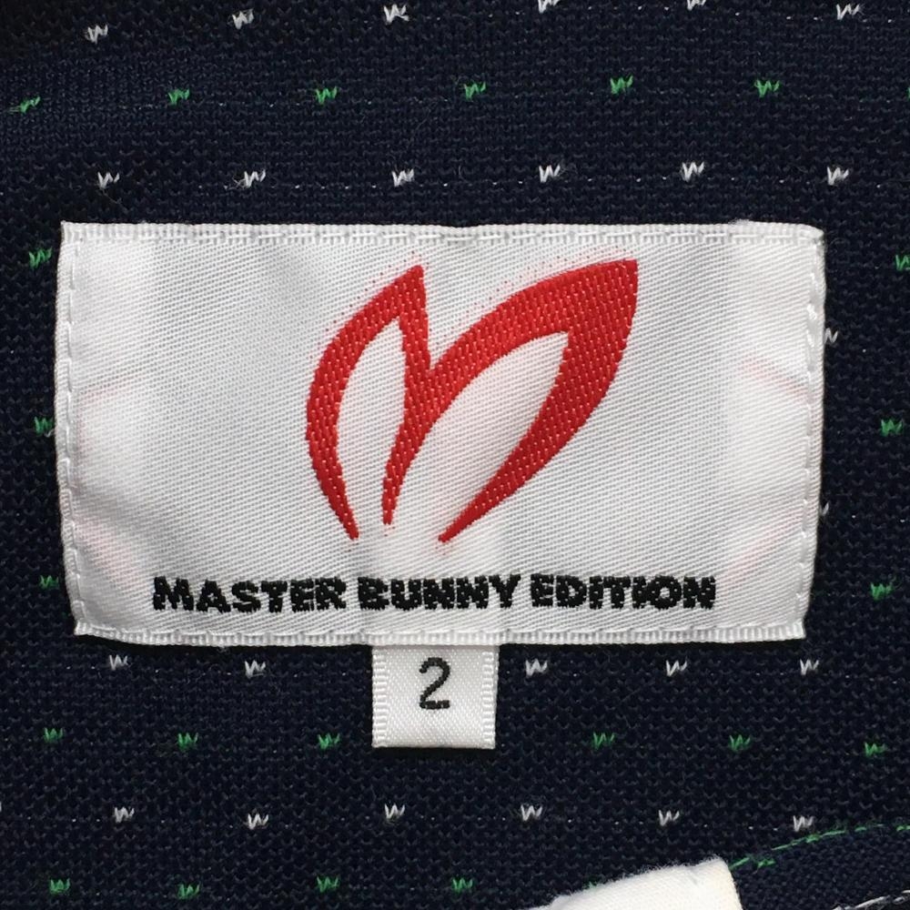 【美品】マスターバニー 半袖ポロシャツ ネイビー×白 ピンドット レディース 2(L) ゴルフウェア MASTER BUNNY EDITION