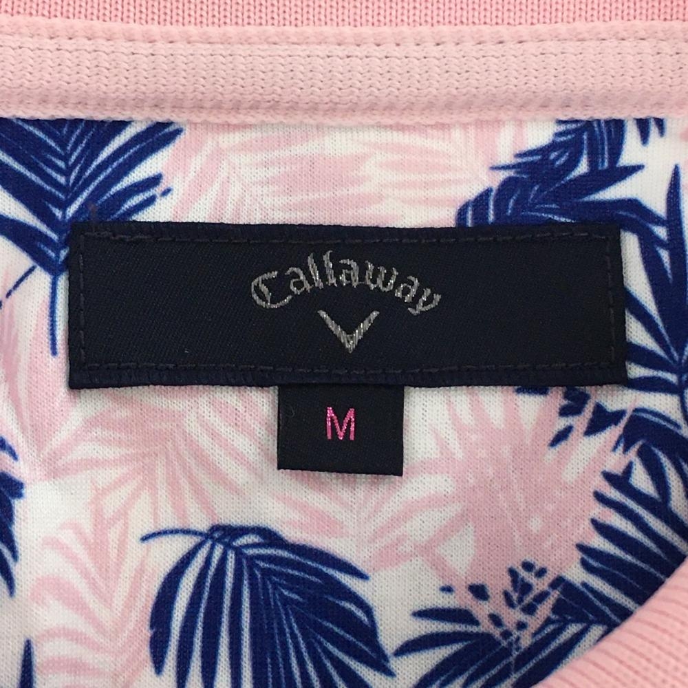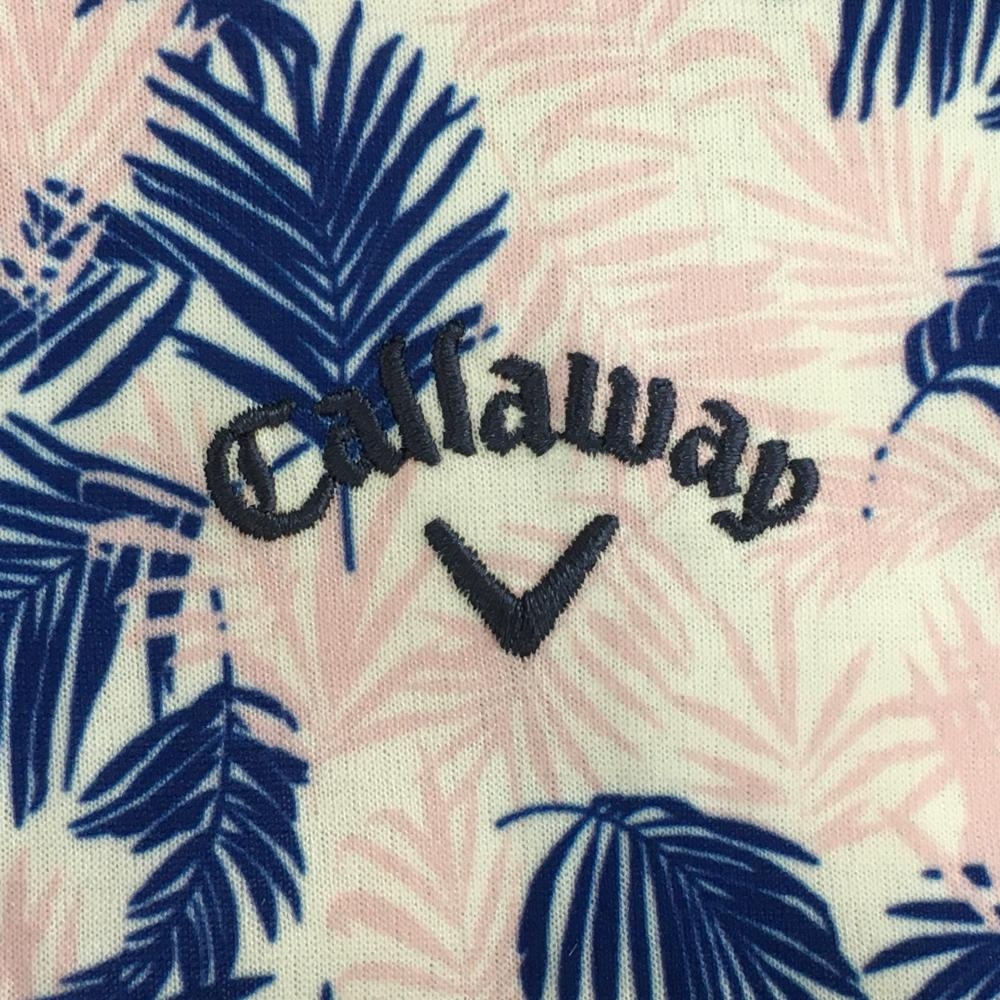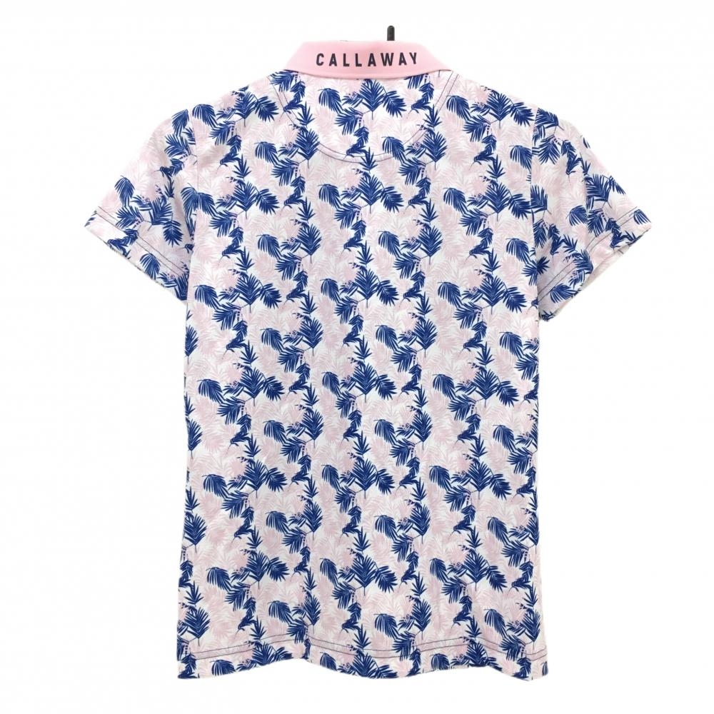 【超美品】キャロウェイ 半袖ポロシャツ 白×ピンク リーフ柄 ロゴ刺しゅう レディース M ゴルフウェア Callaway