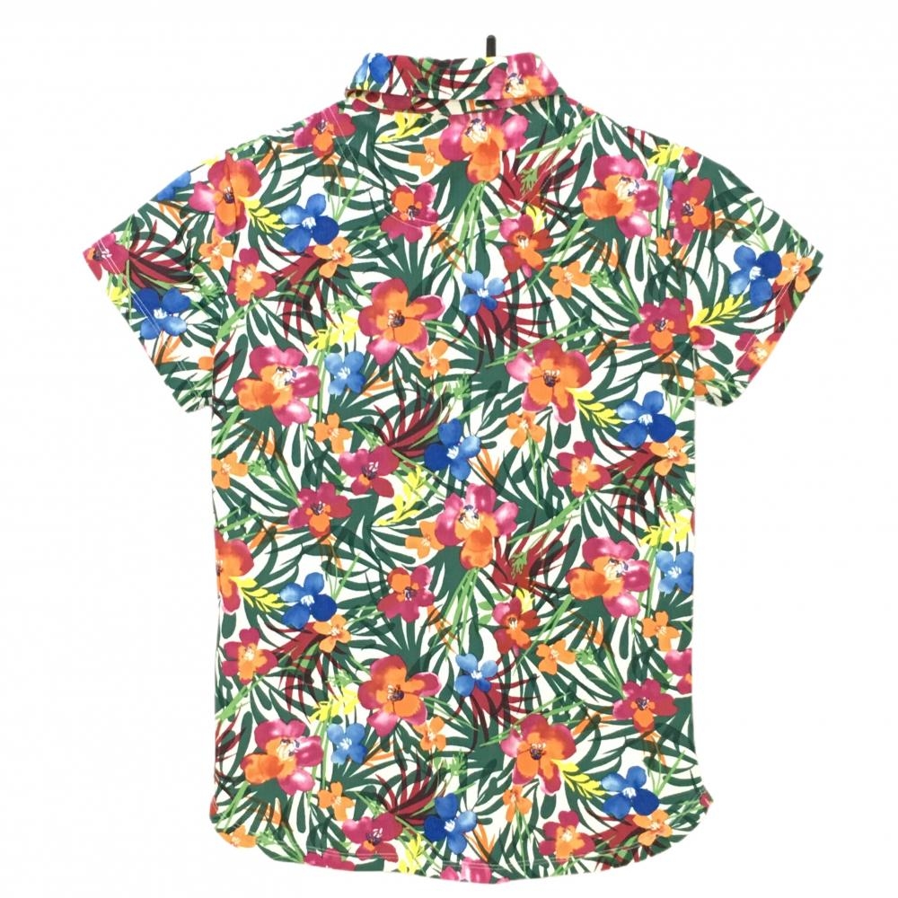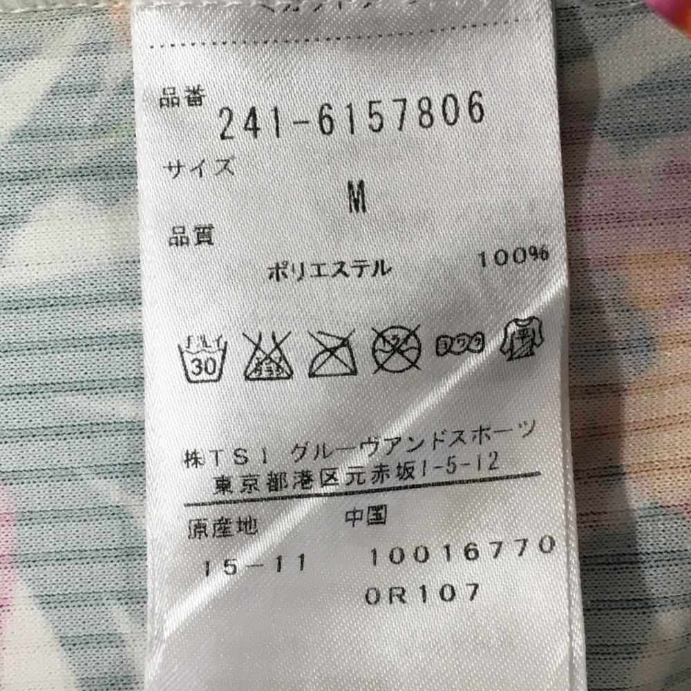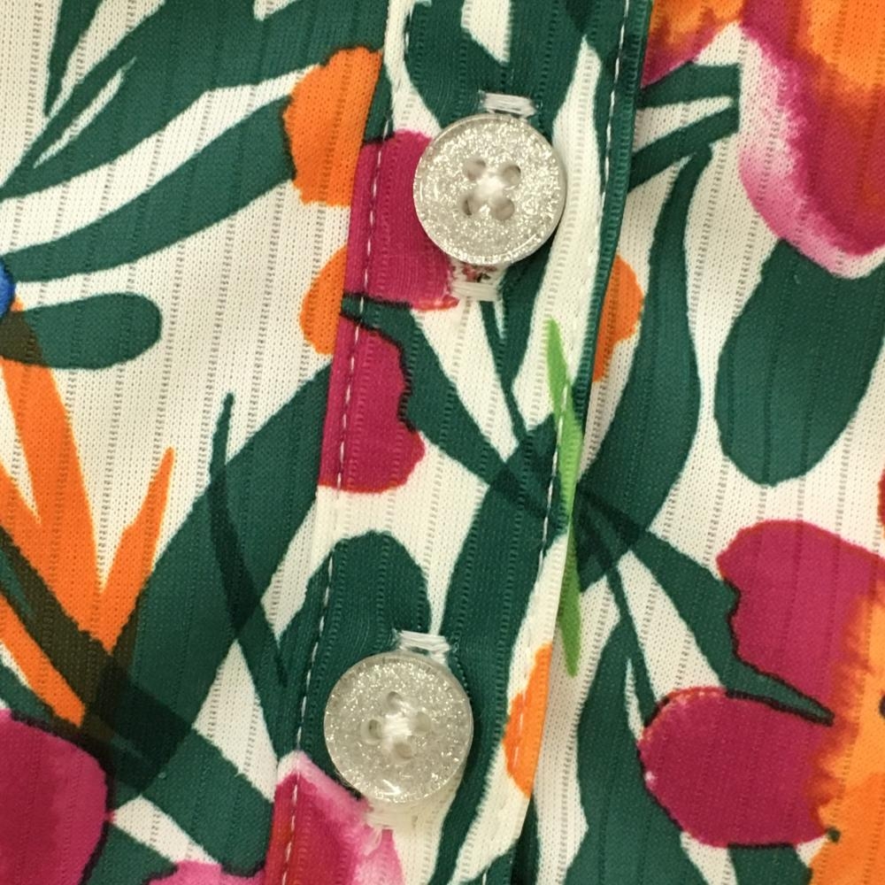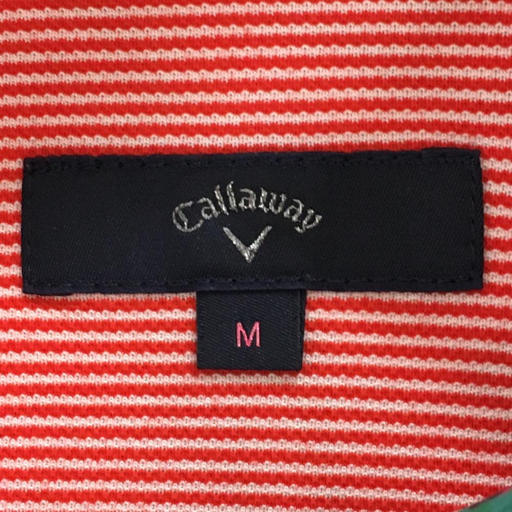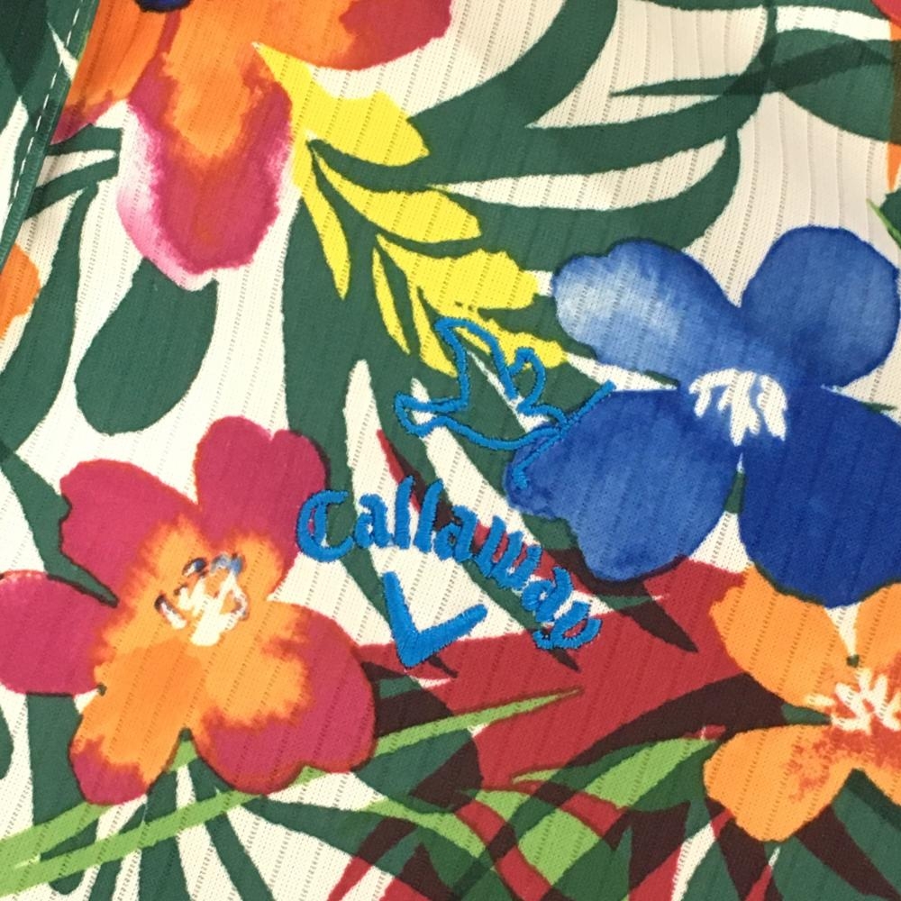 【超美品】キャロウェイ 半袖ポロシャツ グリーン×ピンク 花柄 ストライプ織生地 レディース M ゴルフウェア Callaway