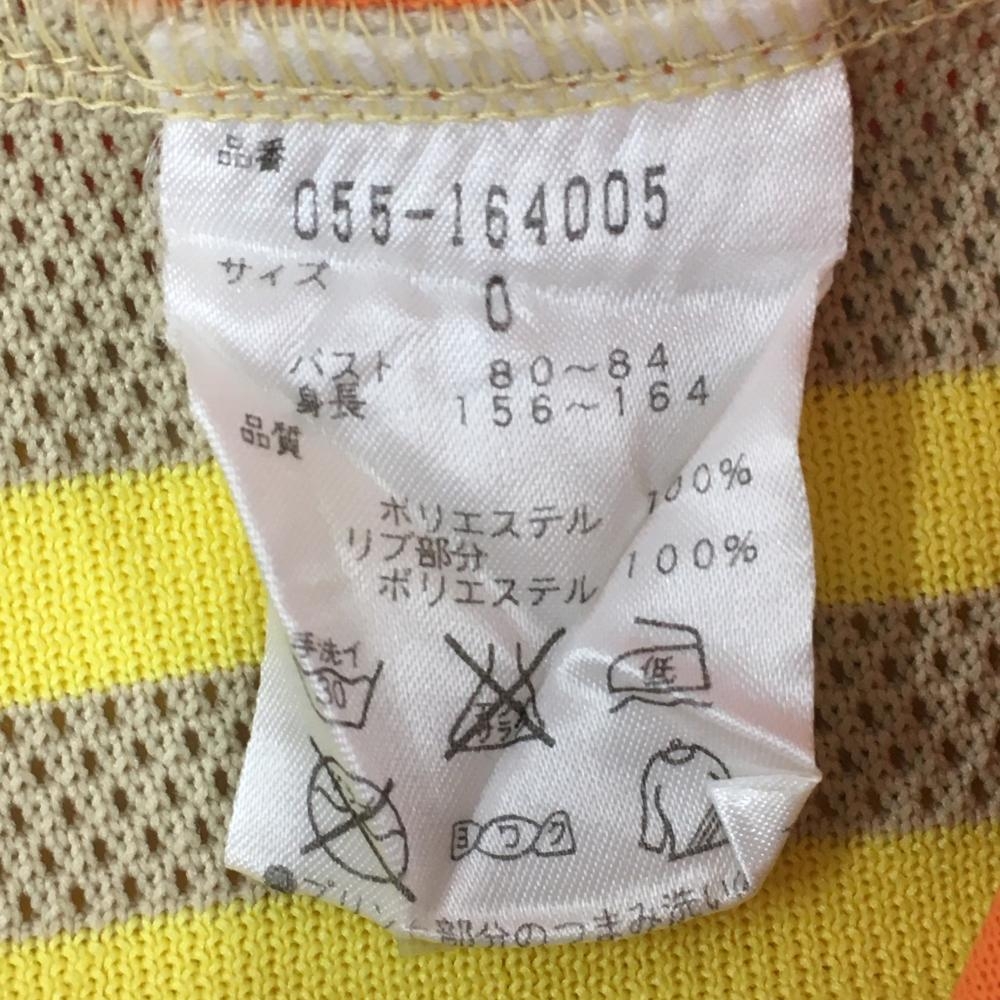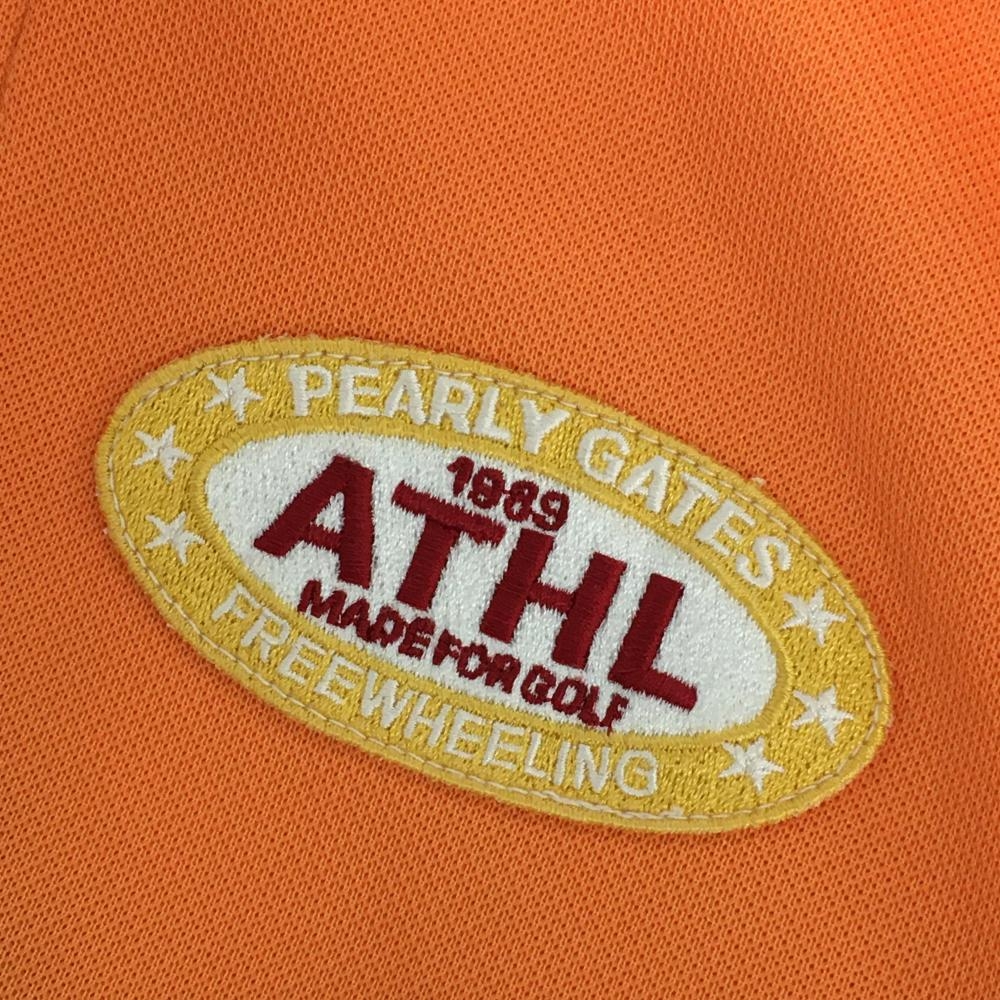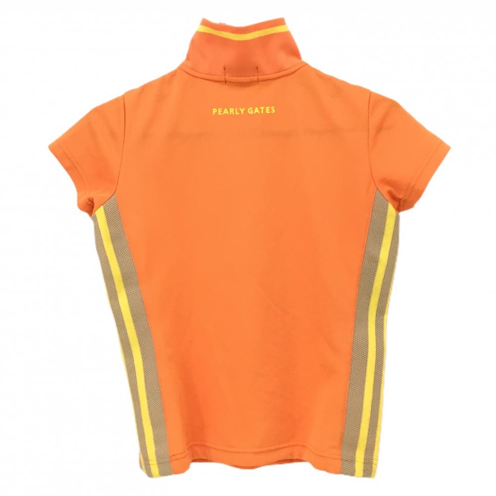 【美品】パーリーゲイツ 半袖ハイネックシャツ オレンジ×イエロー サイド切替 ハーフジップ レディース 0(S) ゴルフウェア PEARLY GATES