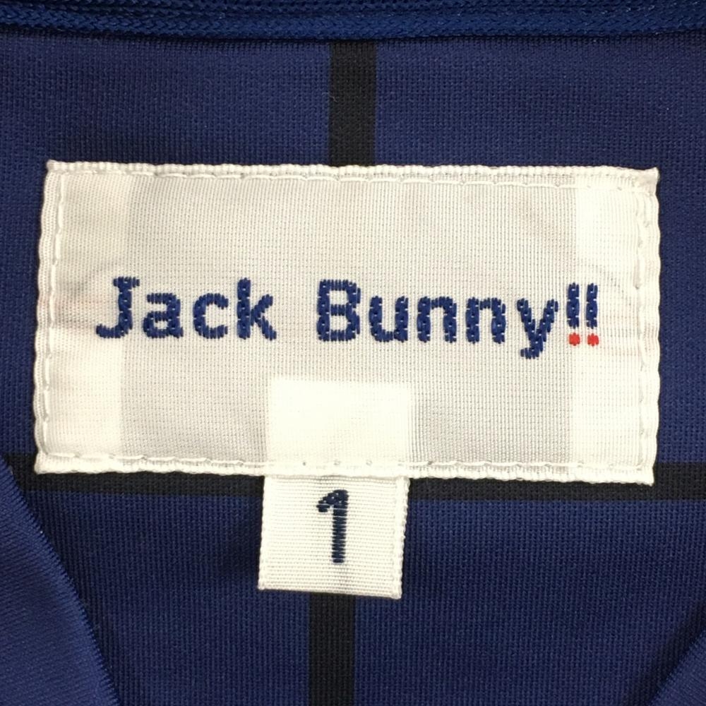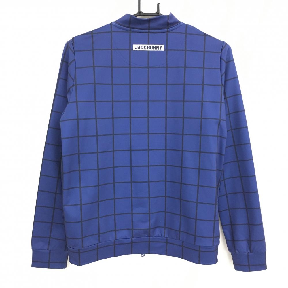 【美品】ジャックバニー ジャケット ブルー×黒 格子チェック サイドライン レディース 1(M) ゴルフウェア Jack Bunny
