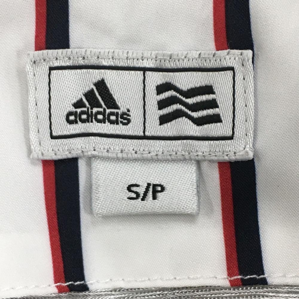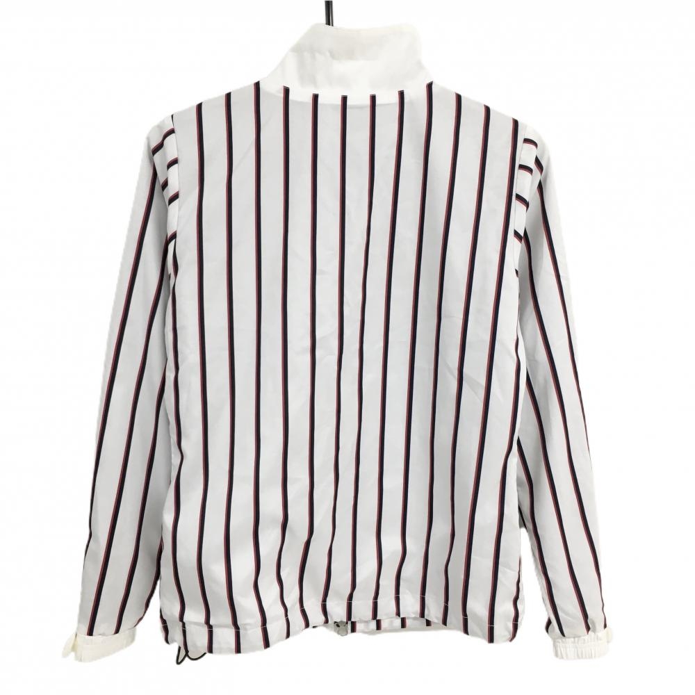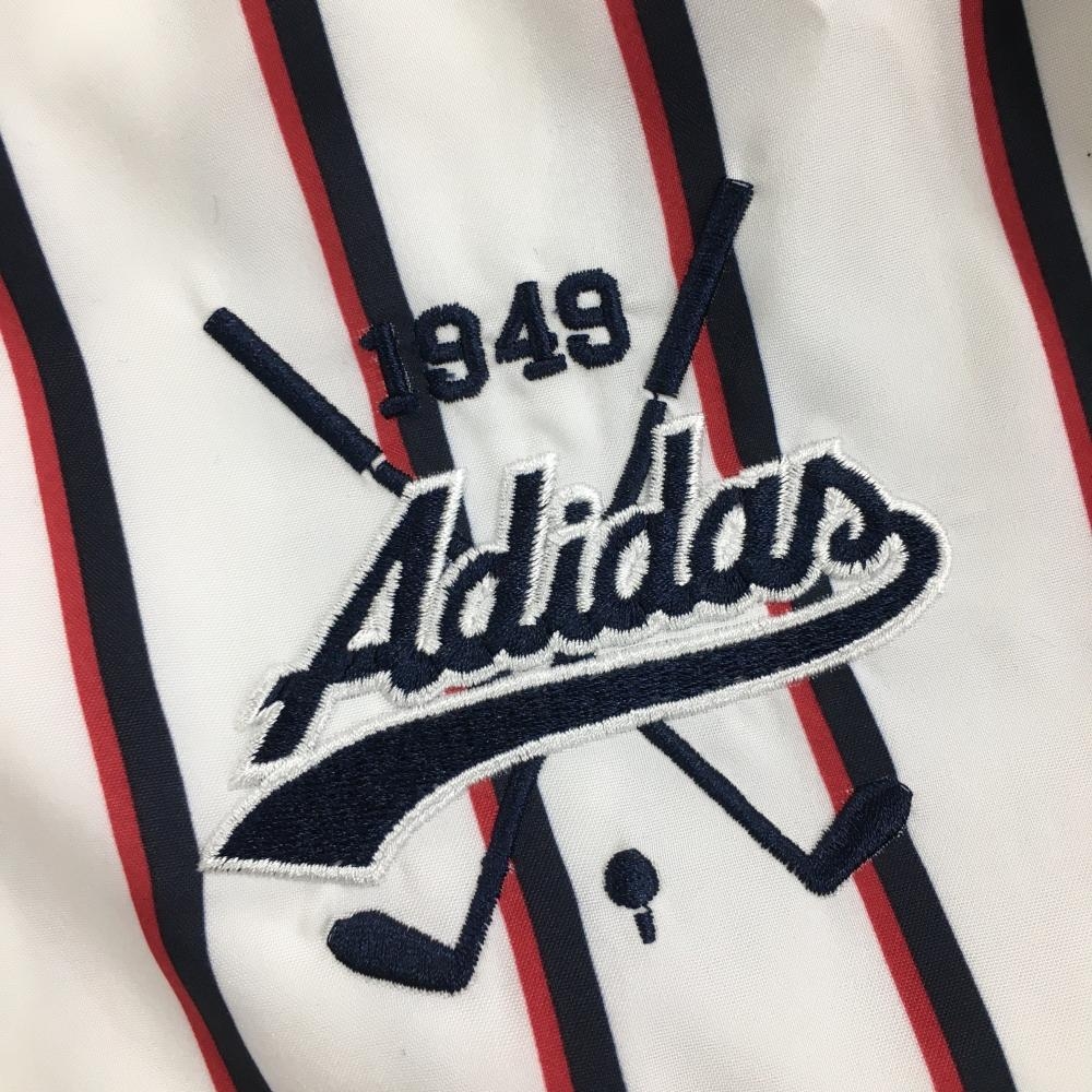 【超美品】アディダス ジャケット 白×ネイビー ストライプ 蓄熱裏地 薄手 レディース S/P ゴルフウェア adidas