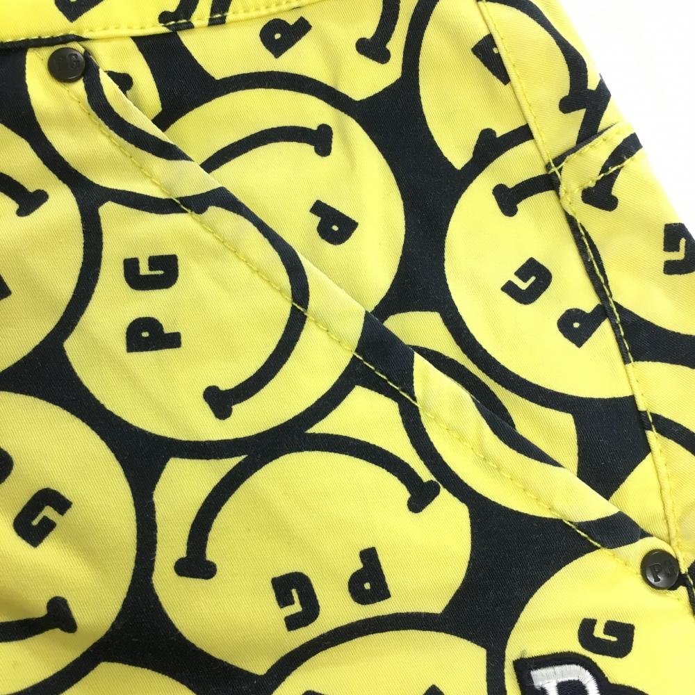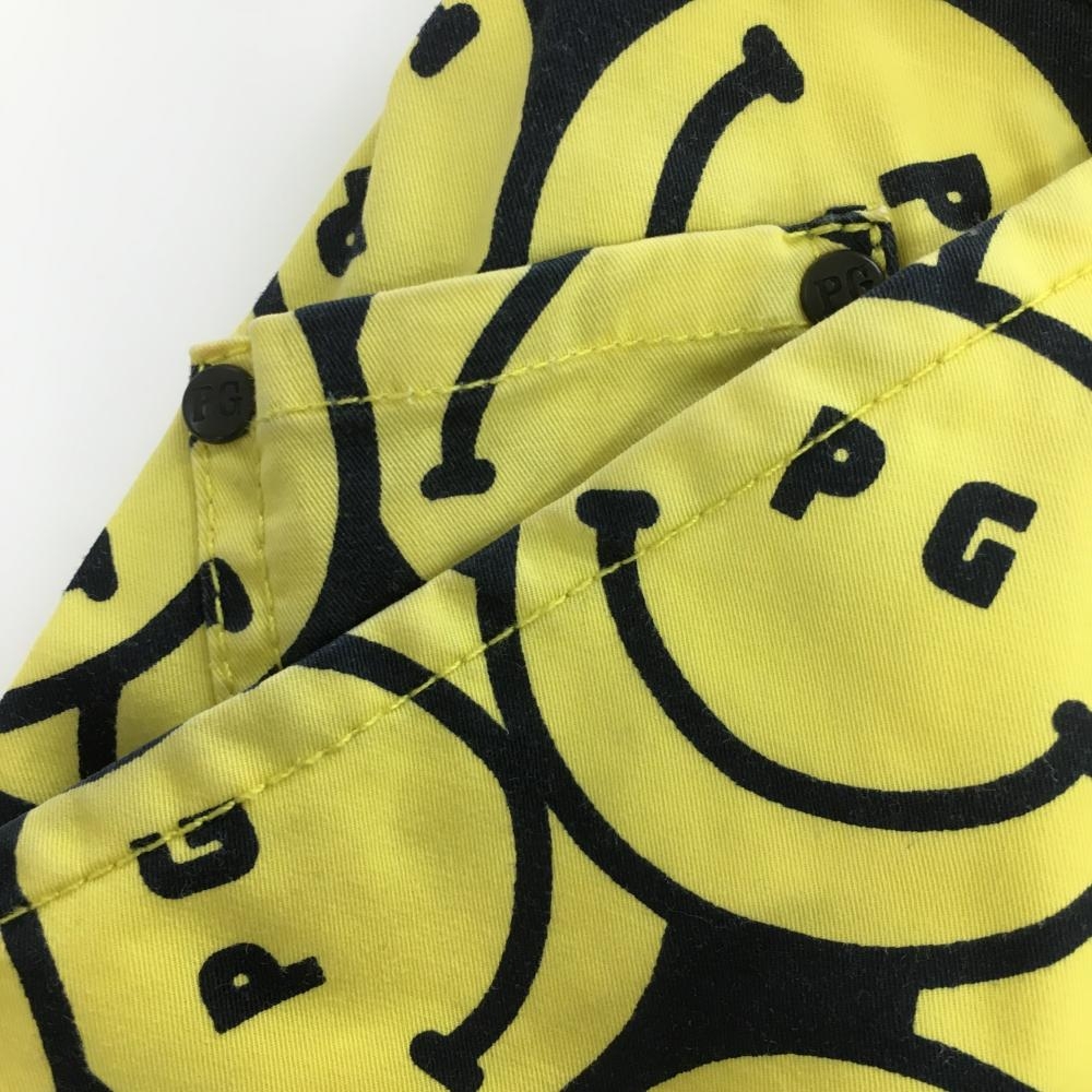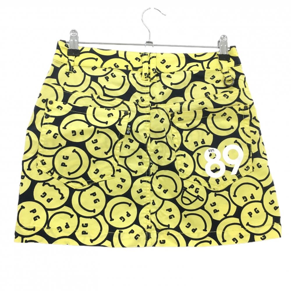 【美品】パーリーゲイツ スカート イエロー×黒 ニコちゃん総柄 スマイル レディース 0(S) ゴルフウェア PEARLY GATES