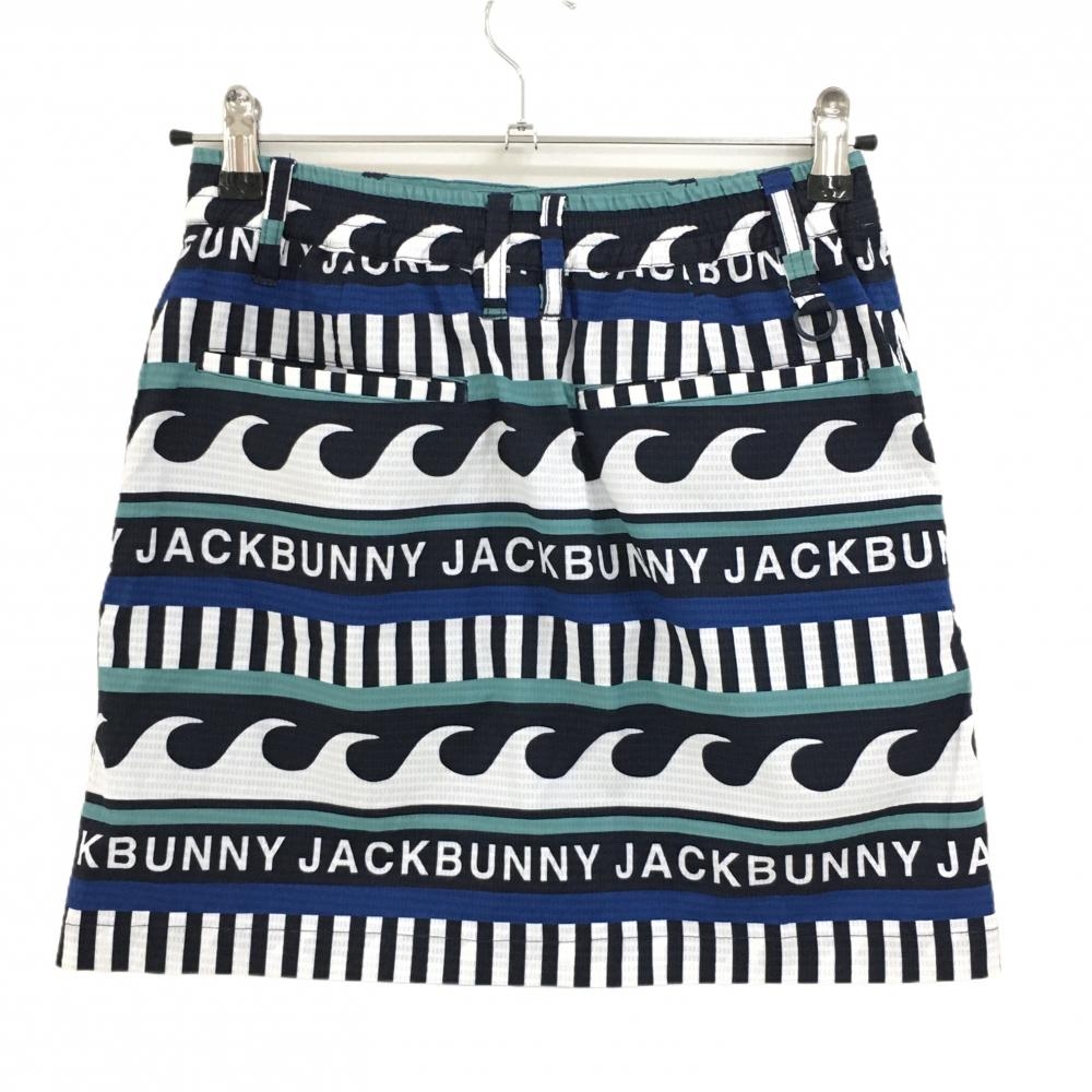 【超美品】ジャックバニー スカート ネイビー×白 ストライプ・波・ロゴ総柄 レディース 1(M) ゴルフウェア 2024年モデル Jack Bunny
