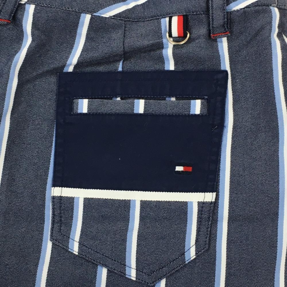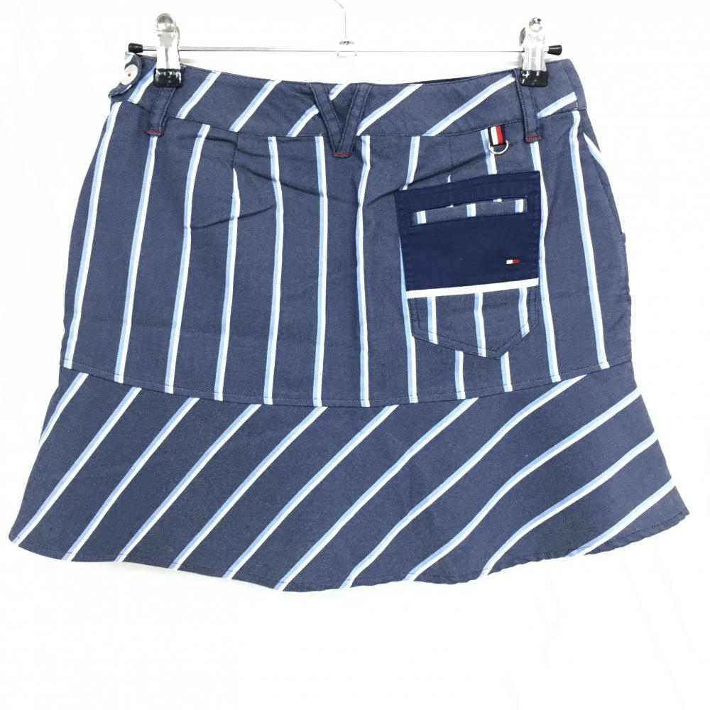 【超美品】トミーヒルフィガー スカート ネイビー×ライトブルー ストライプ 裾フレア レディース L ゴルフウェア Tommy Hilfiger Golf