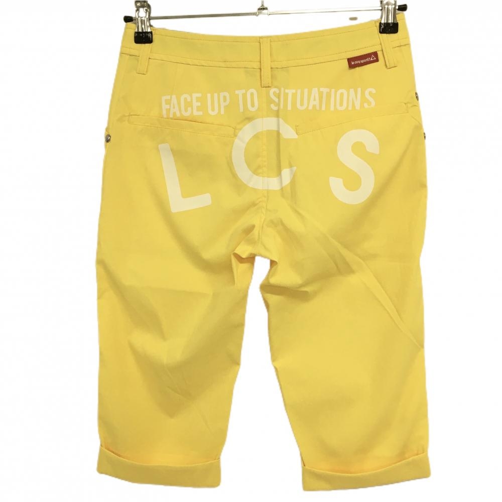 【超美品】ルコック 半端丈パンツ イエロー ロゴ白 ストレッチ レディース 7 ゴルフウェア le coq sportif