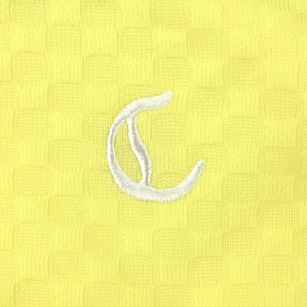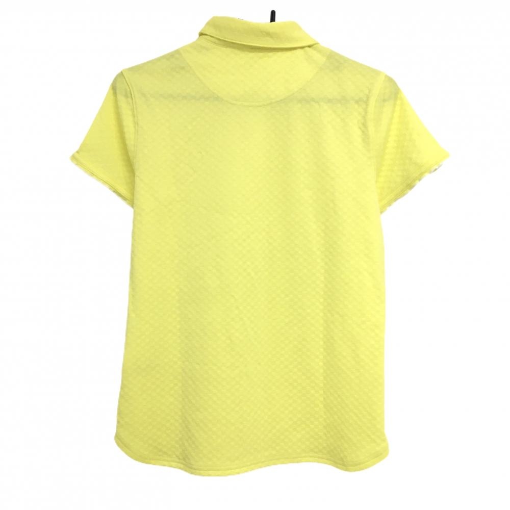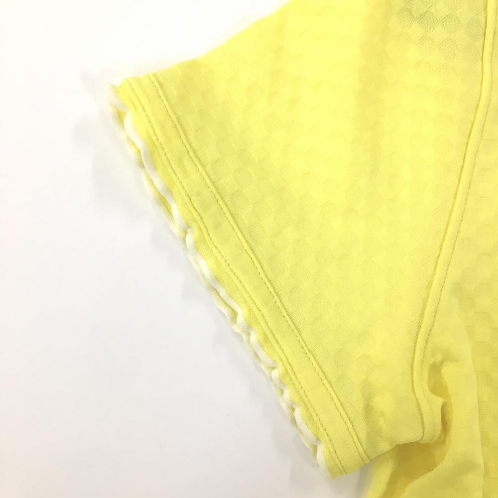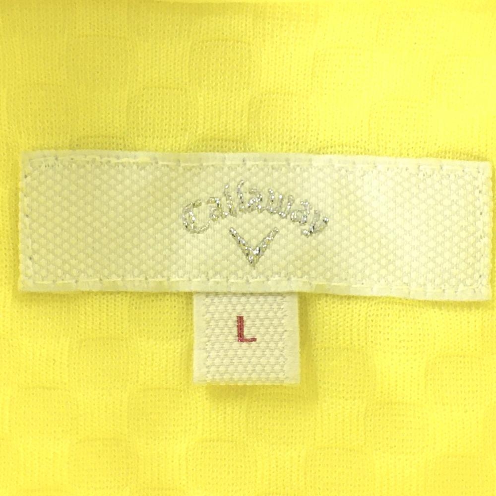 【超美品】キャロウェイ 半袖ポロシャツ イエロー×白 凸凹織生地 袖口フリル レディース L ゴルフウェア Callaway