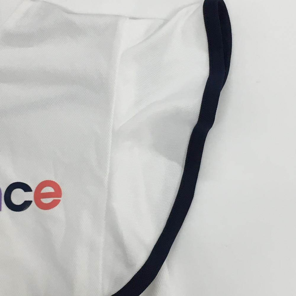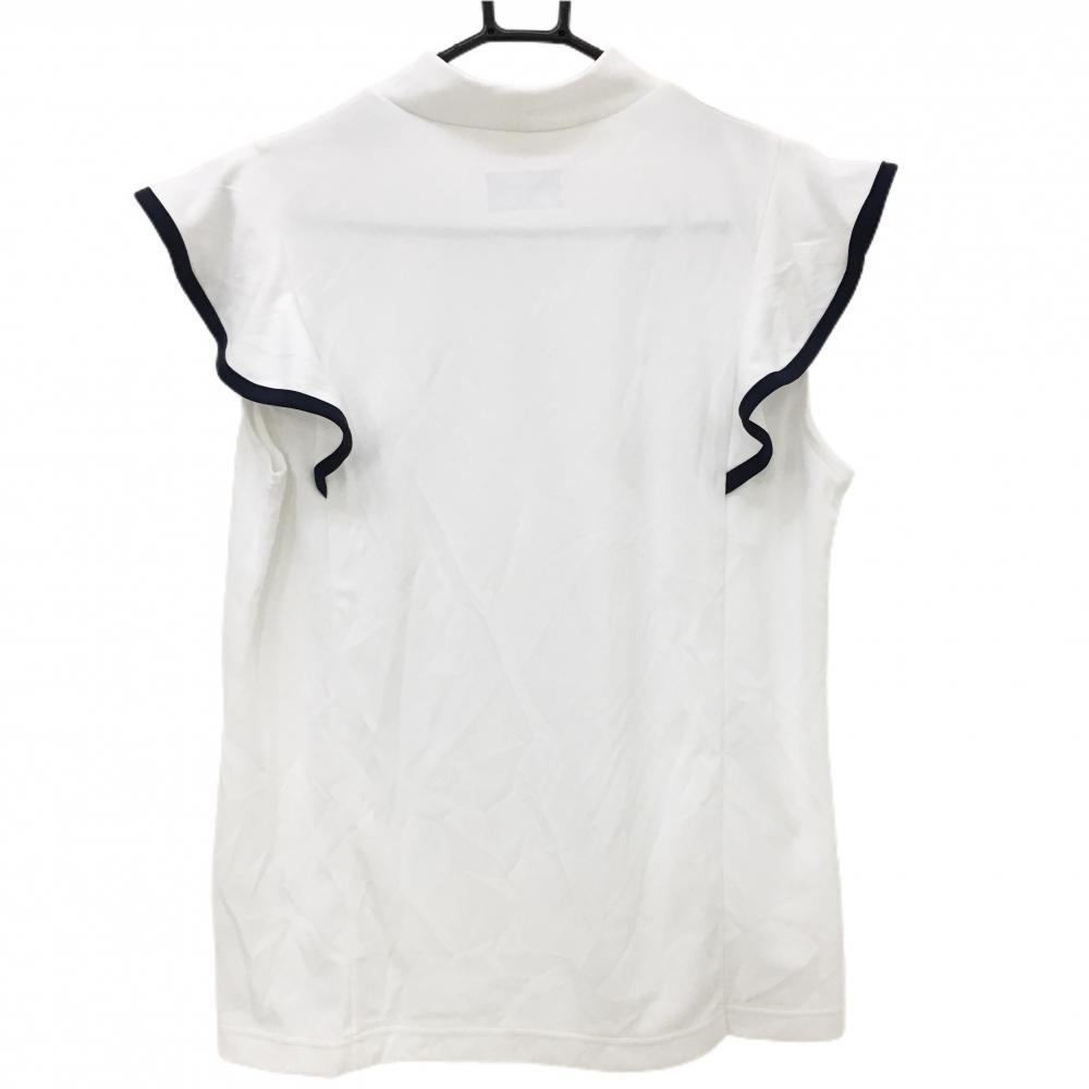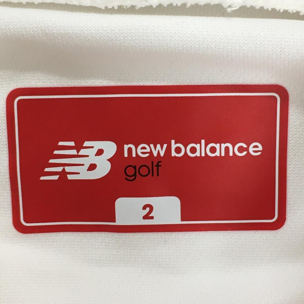 【美品】ニューバランスゴルフ 半袖ハイネックシャツ 白×ネイビー 袖フリル レディース 2(L) ゴルフウェア 2023年モデル New Balance