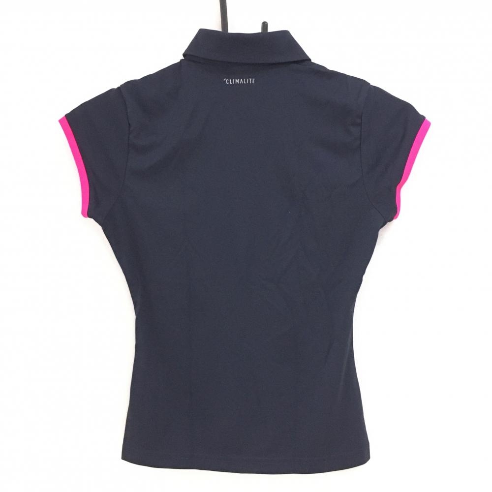 【超美品】アディダス 半袖ポロシャツ ネイビー×グレー×ピンク 袖3ライン レディース S ゴルフウェア adidas