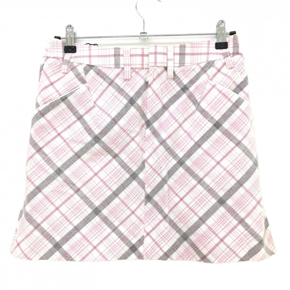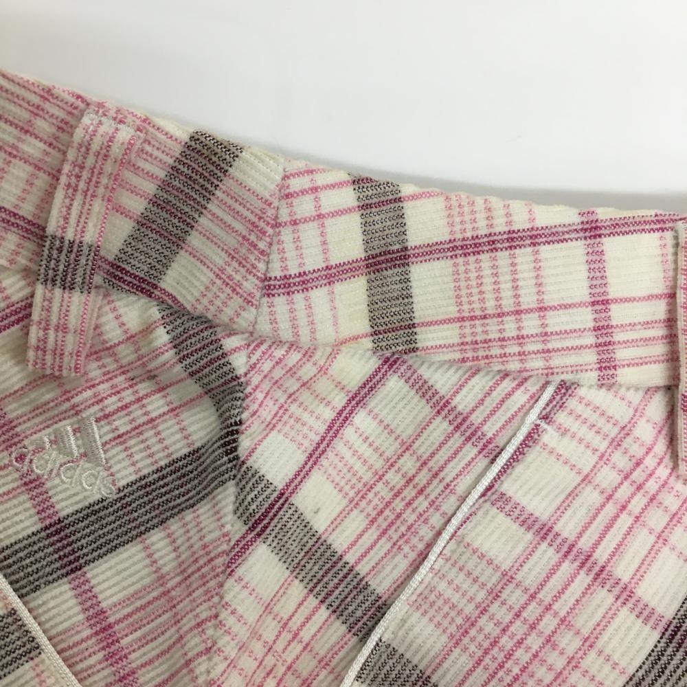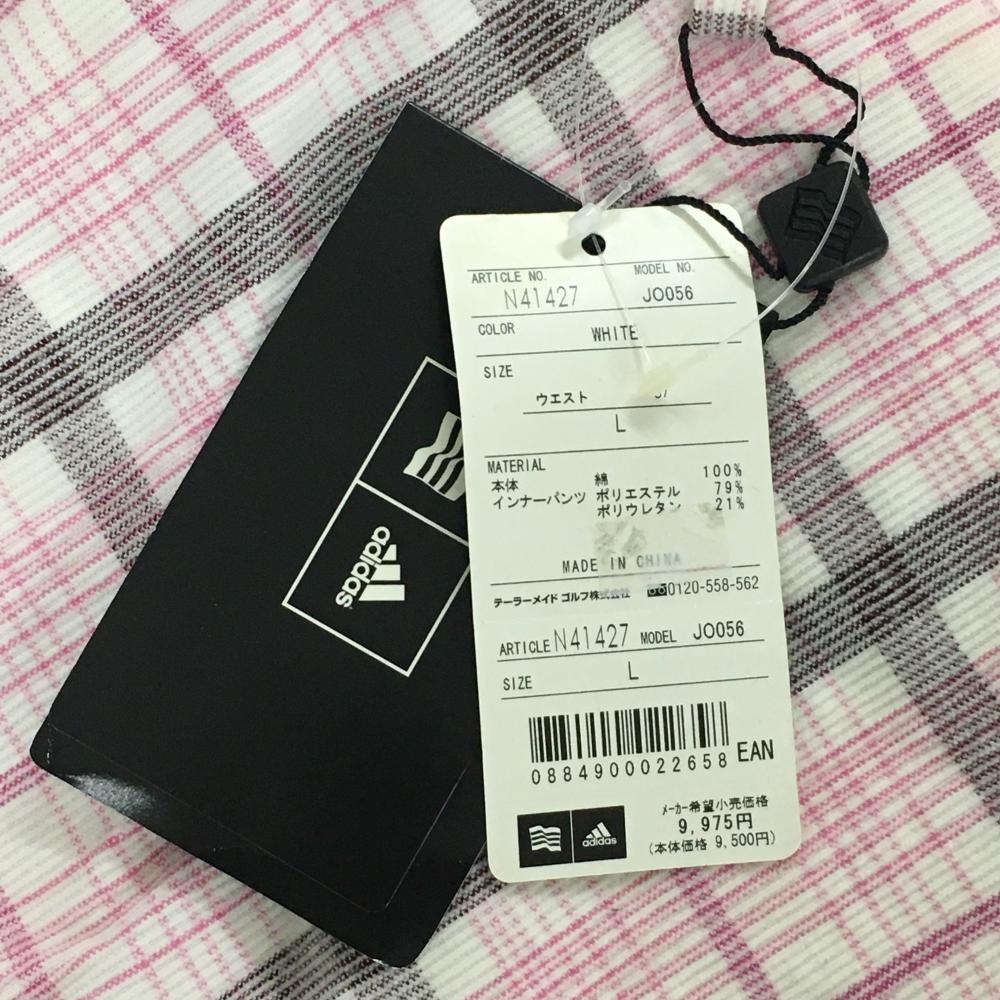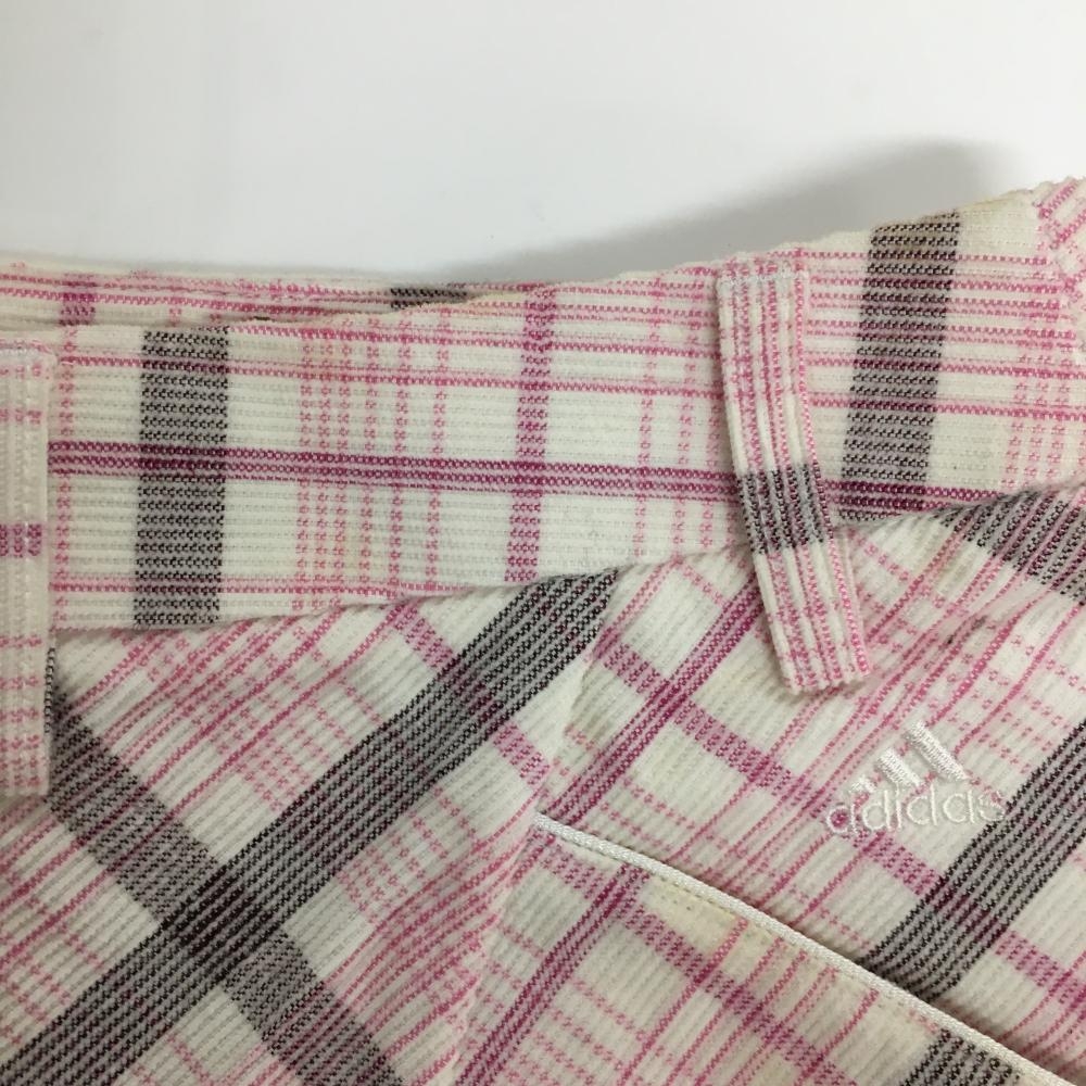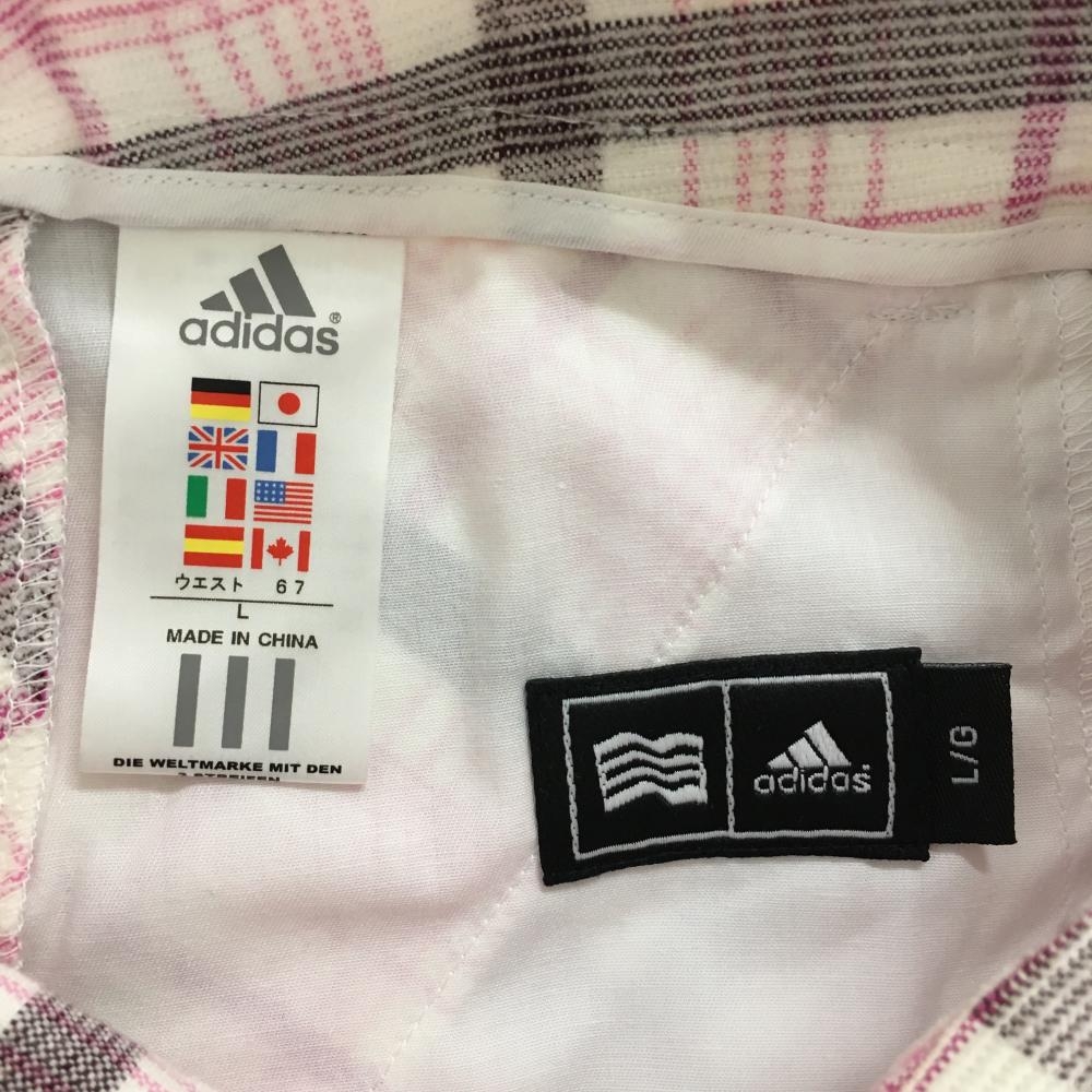 アディダス コーデュロイスカート 白×ピンク チェック 紙タグ付 レディース L ゴルフウェア adidas