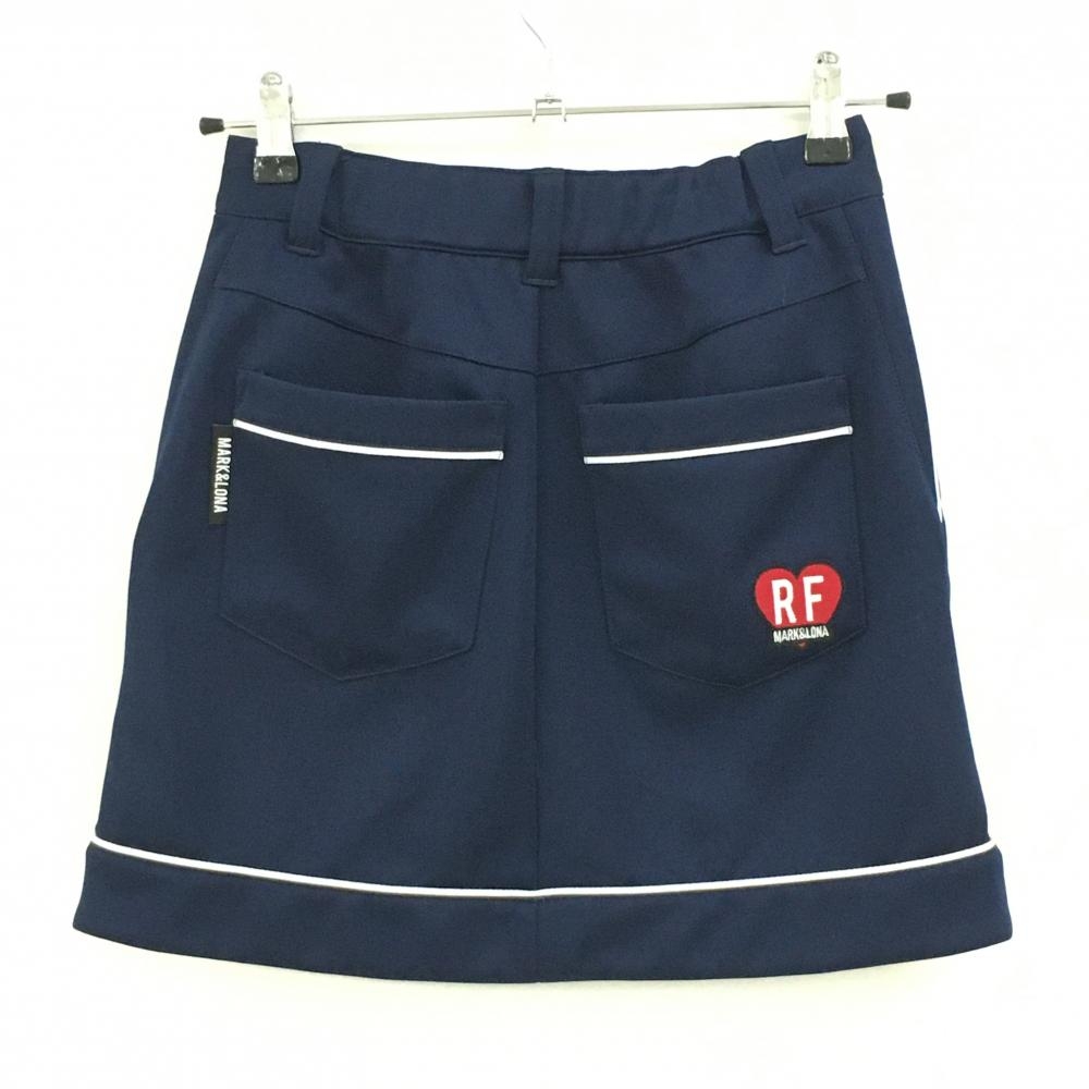 【超美品】マークアンドロナ スカート ネイビー×白 RF パイピンクライン レディース 36(S) ゴルフウェア MARK&LONA