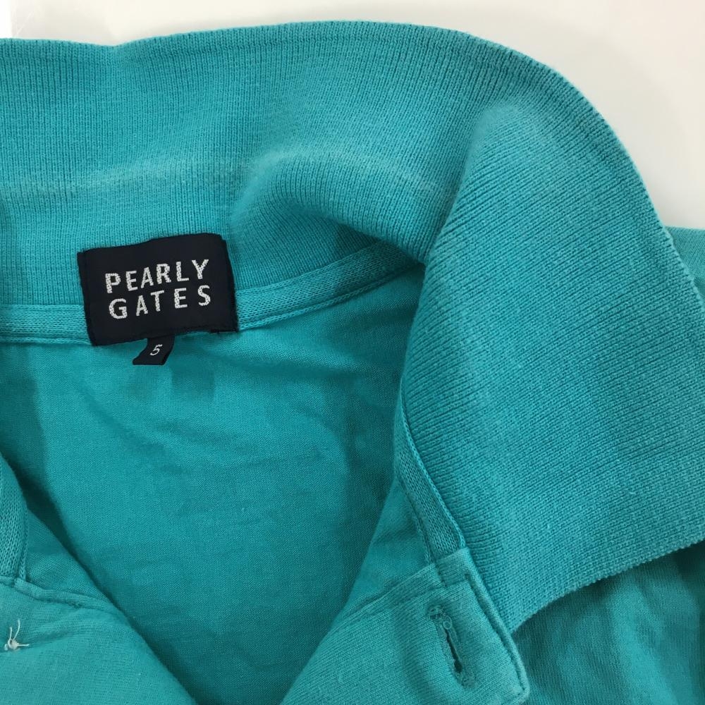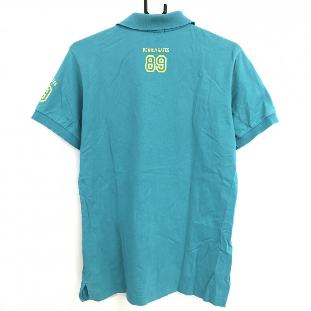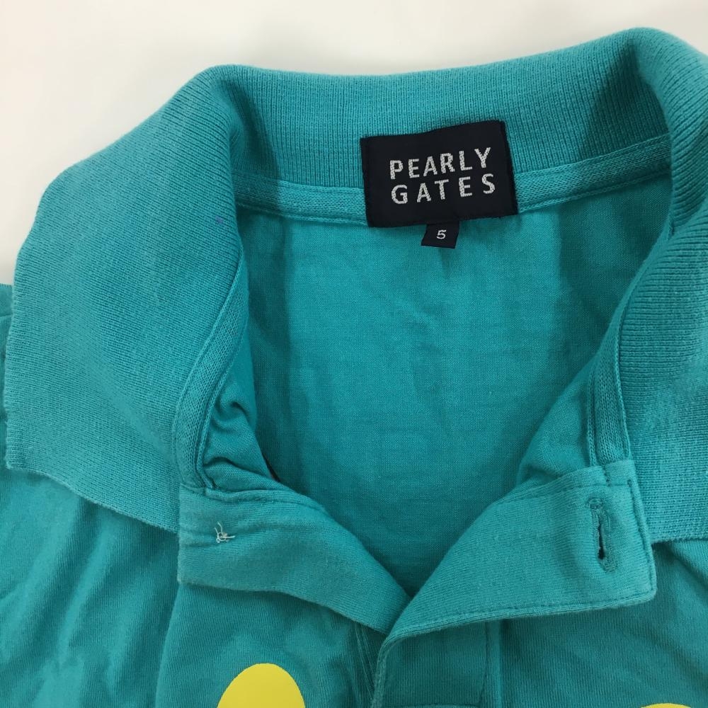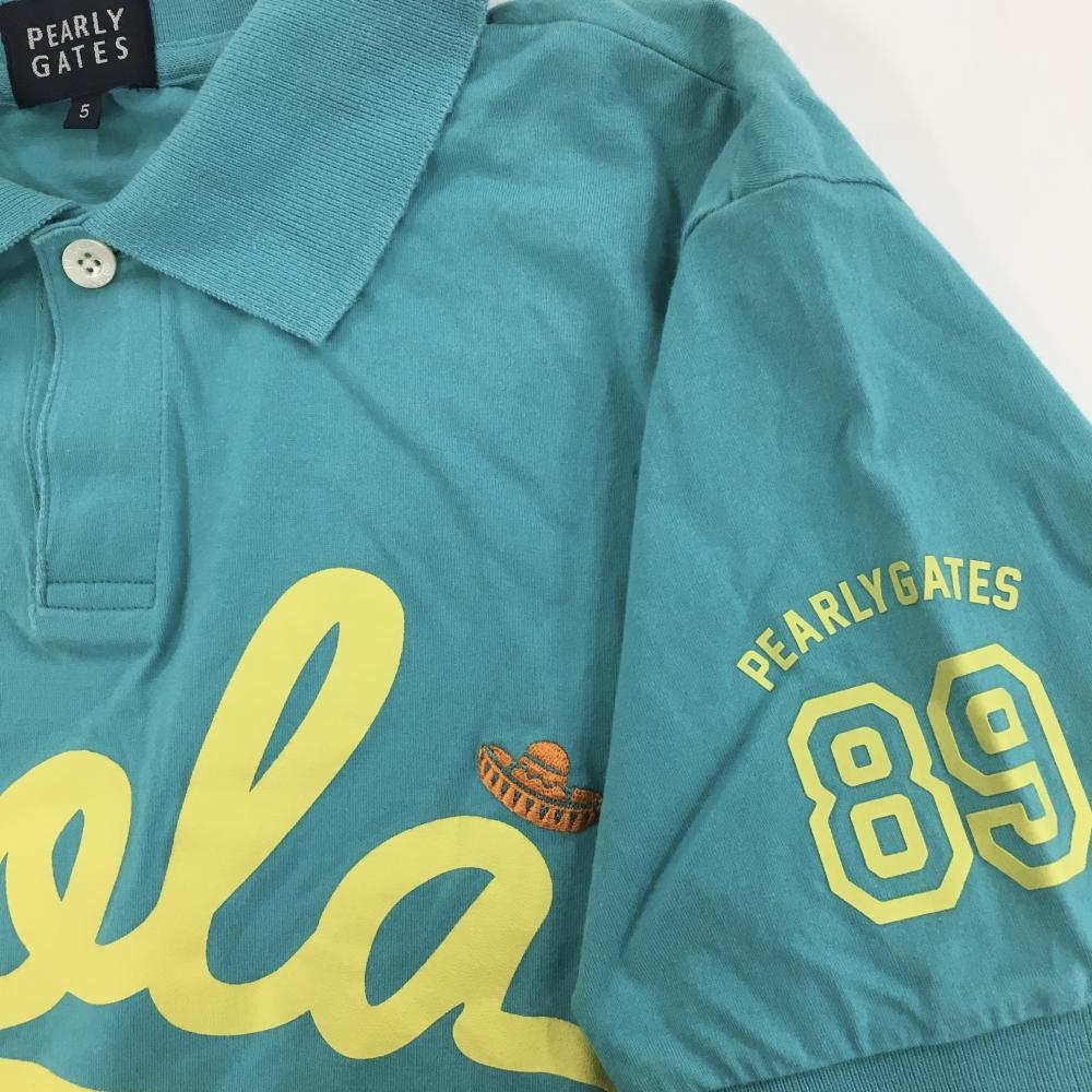 パーリーゲイツ 半袖ポロシャツ ライトグリーン×イエロー フロントプリント メンズ 5(L) ゴルフウェア サンプル品 PEARLY GATES