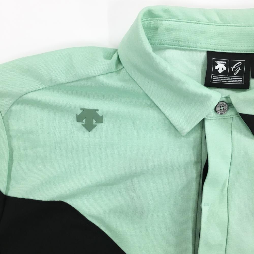 デサントゴルフ 半袖ポロシャツ 黒×ライトグリーン バイカラー 切替 中田英寿 メンズ M ゴルフウェア DESCENTE