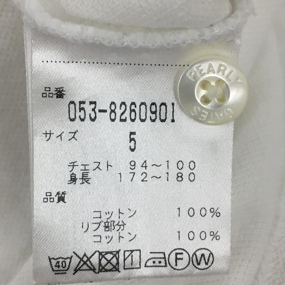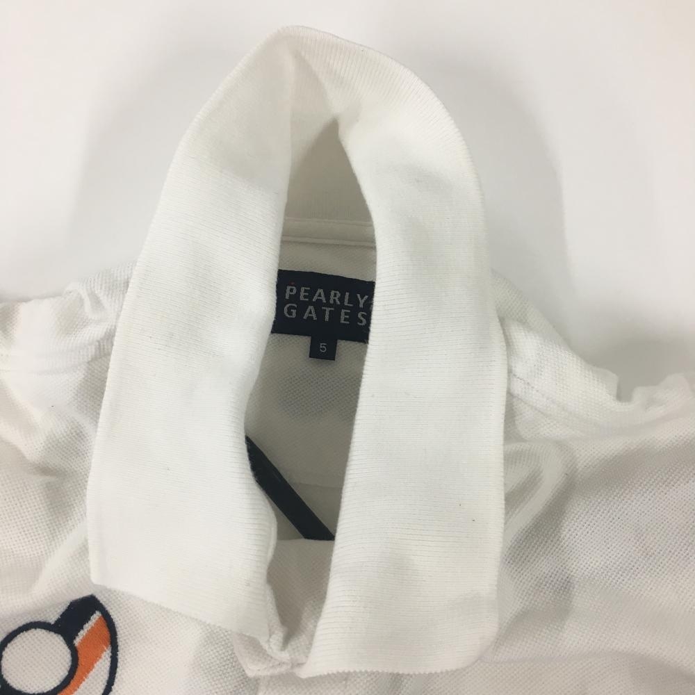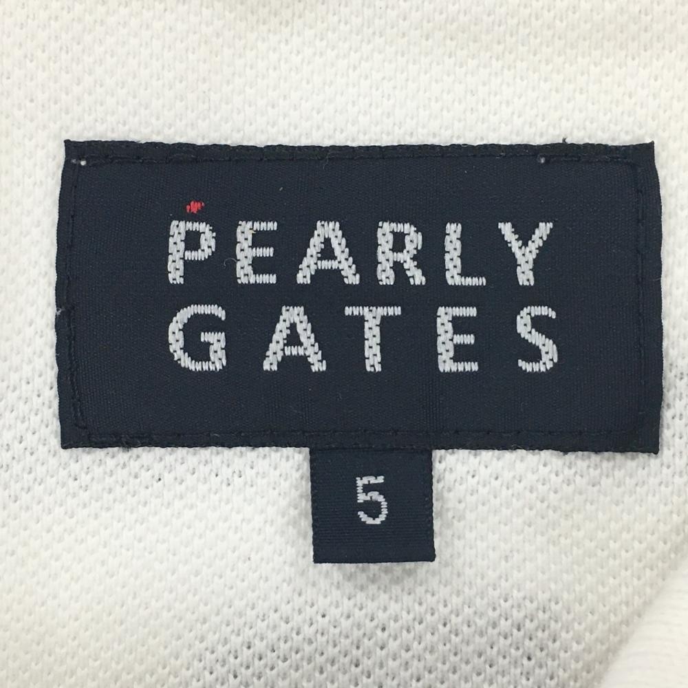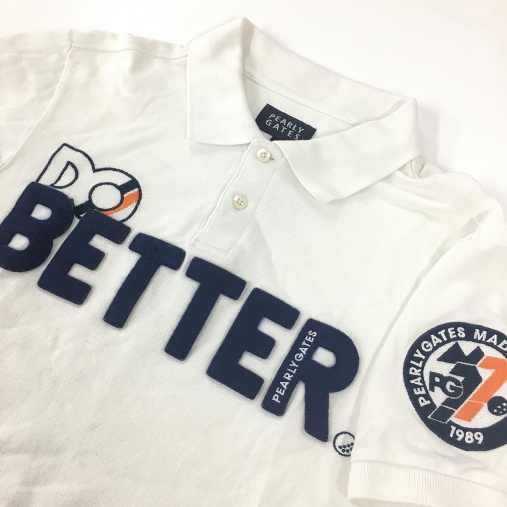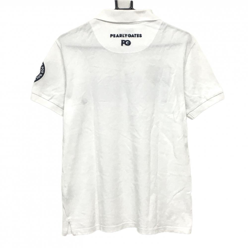 【美品】パーリーゲイツ 半袖ポロシャツ 白×ネイビー フェルトワッペン メンズ 5(L) ゴルフウェア PEARLY GATES