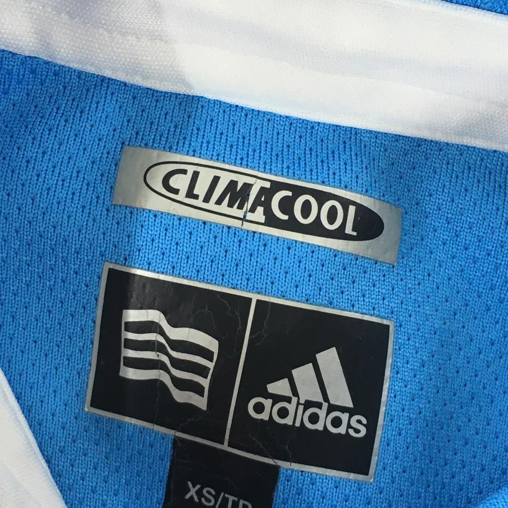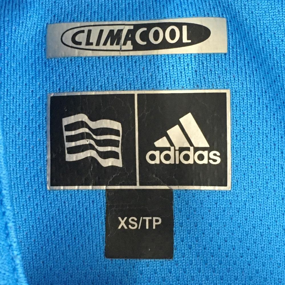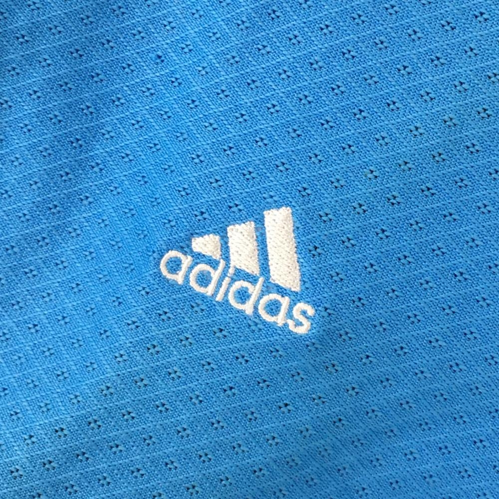 【美品】アディダス 半袖ポロシャツ ライトブルー 織生地 ロゴ刺しゅう レディース XS/TP ゴルフウェア adidas